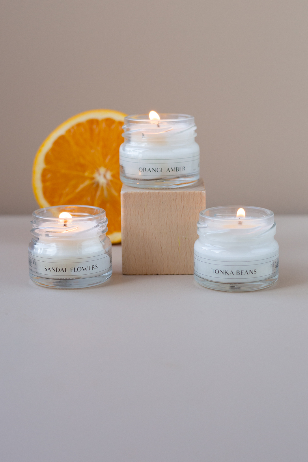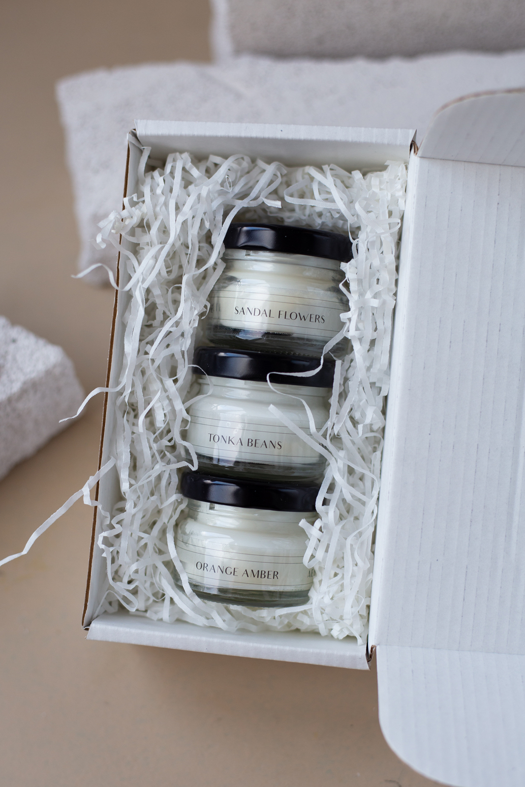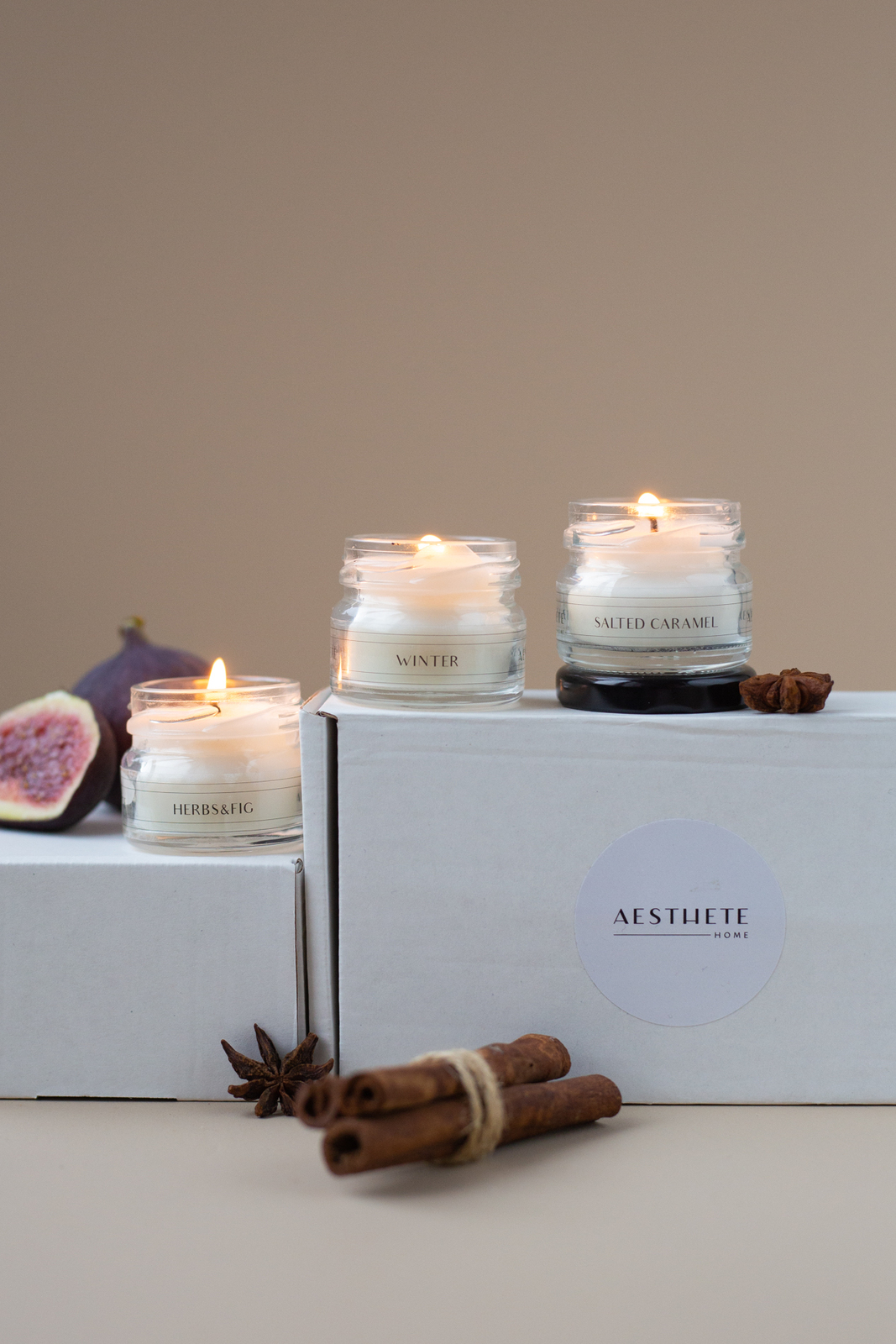 Набор ароматических свечей AESTHETE home "САНДАЛ / ТОНКА / АПЕЛЬСИН", 3 шт