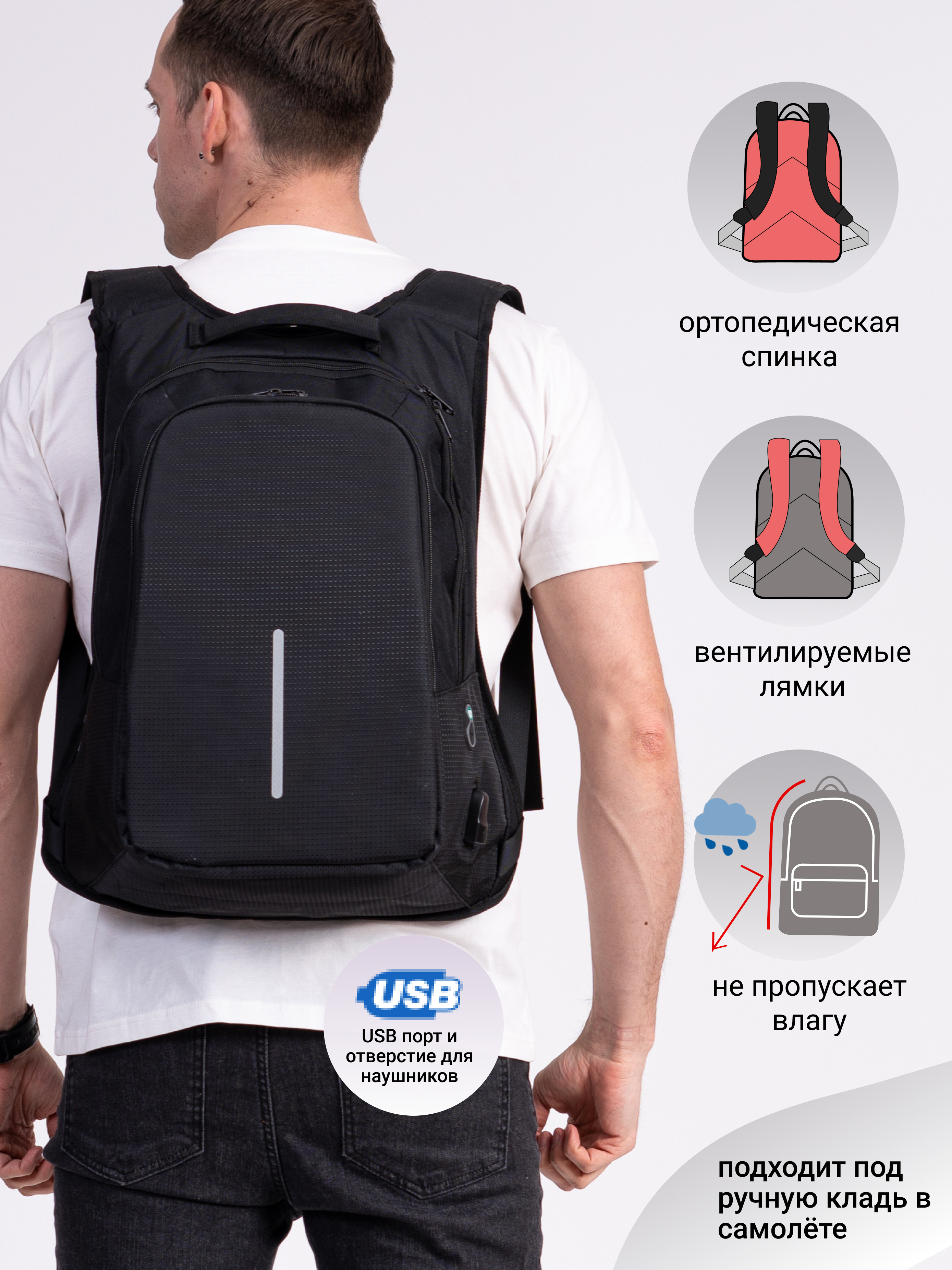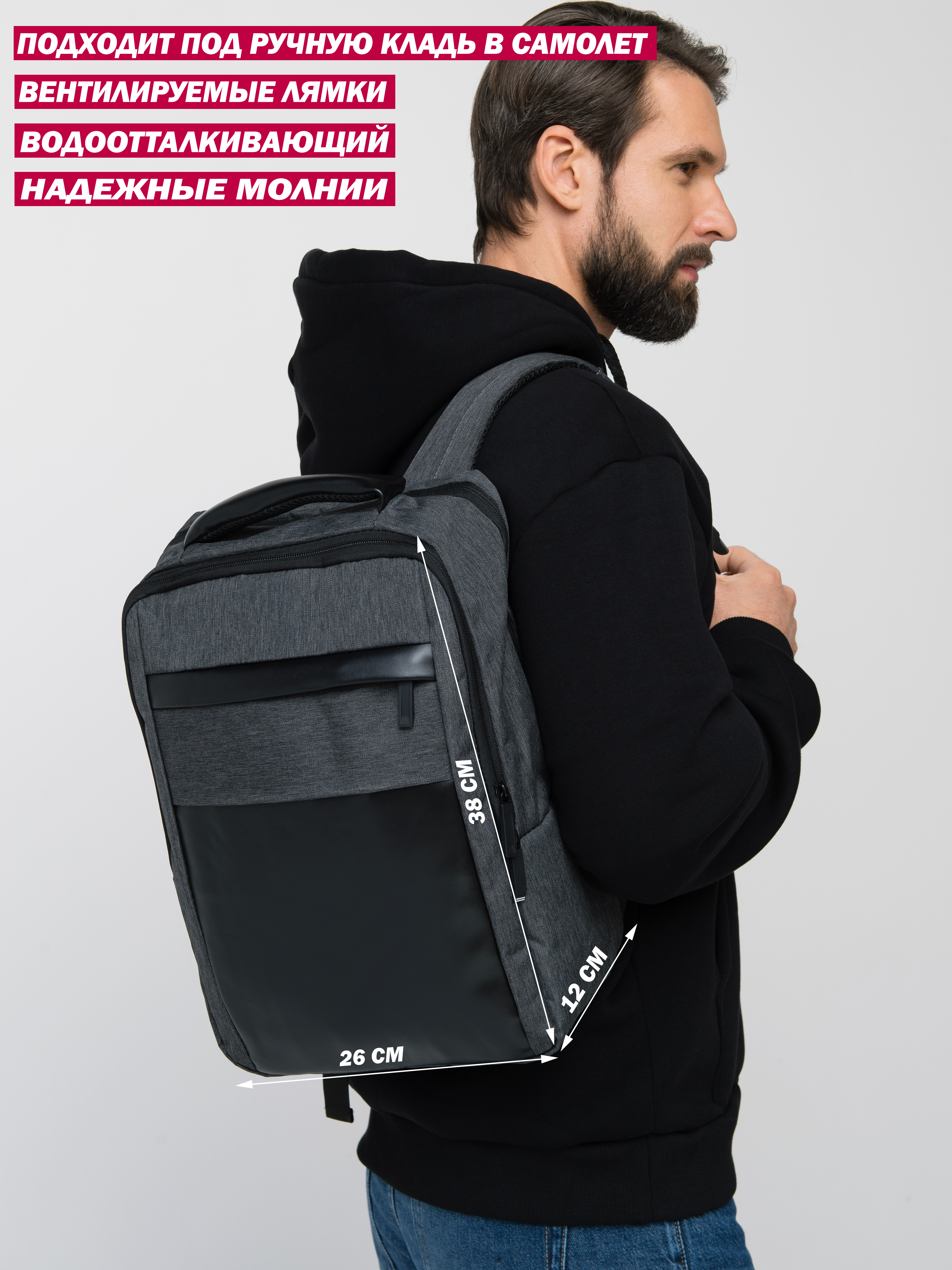 Рюкзак мужской текстильный/ Городской стиль/ Сумка для ноутбука/ Черный