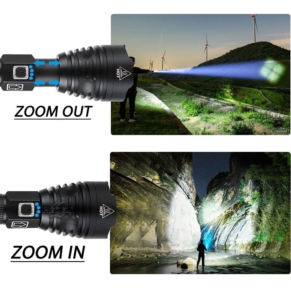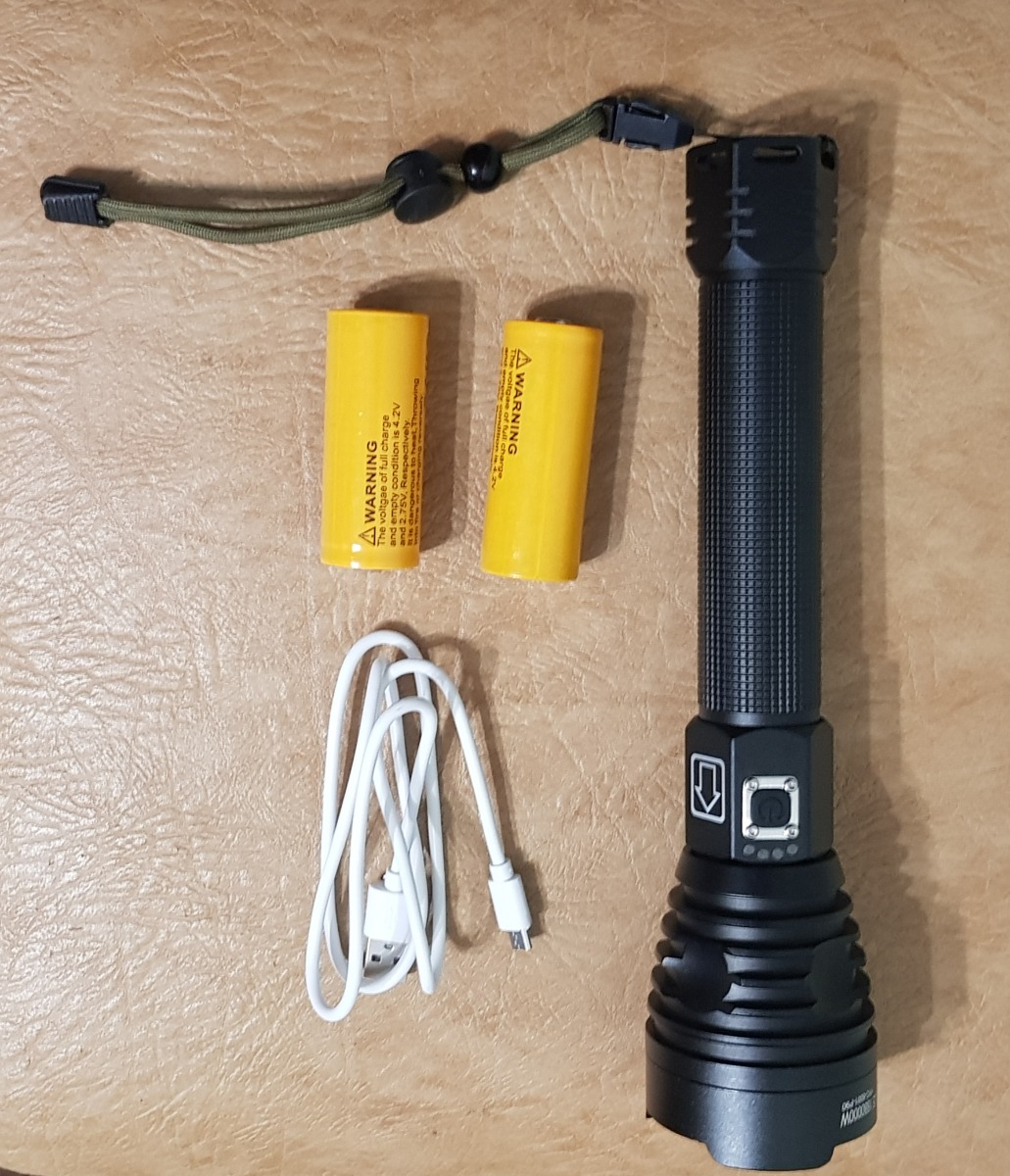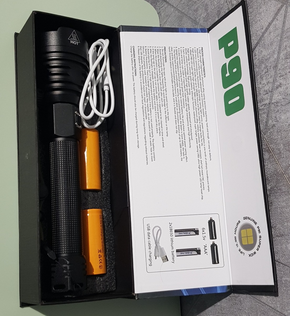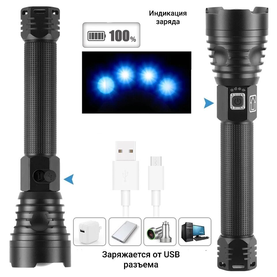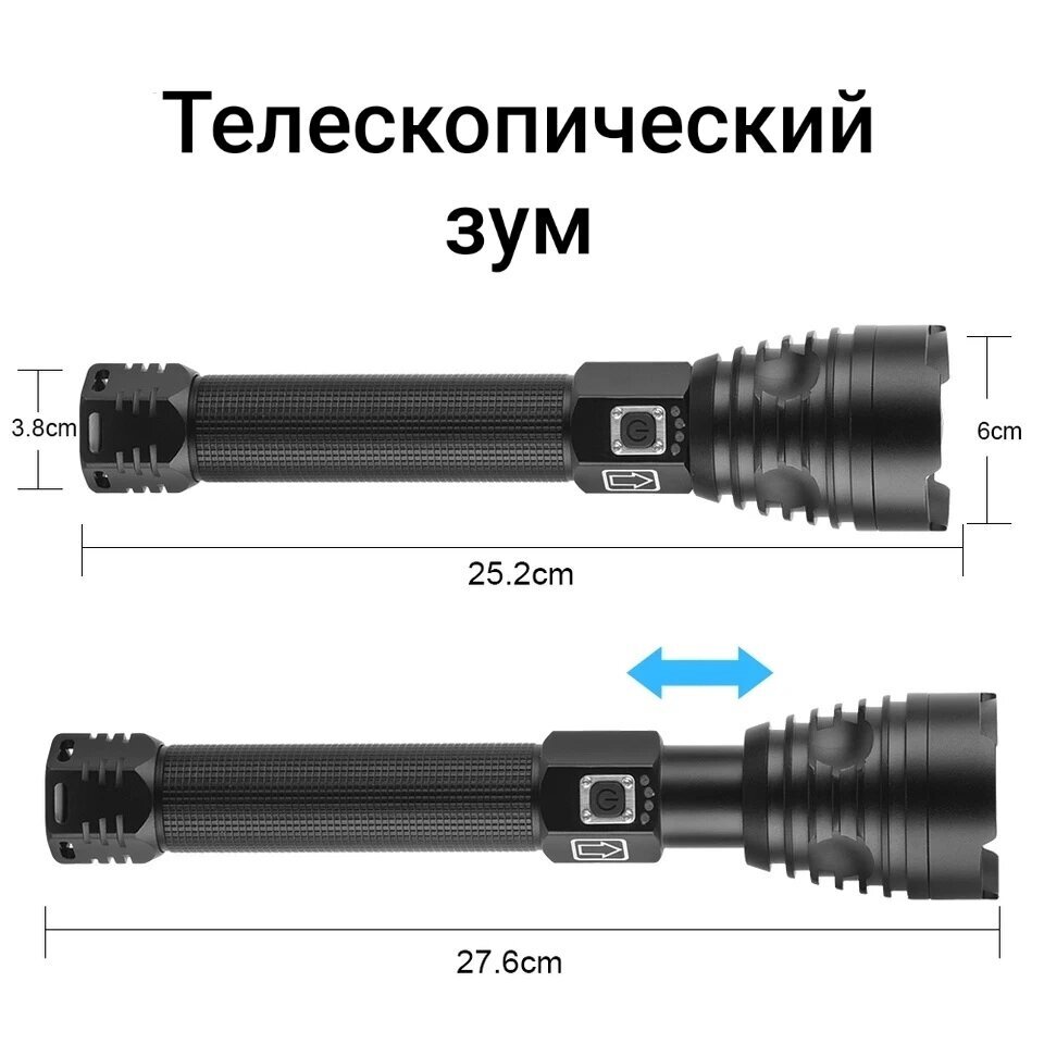 Фонарь ручной аккумуляторный/C мощным светодиодом P-90/Аккумуляторы 2шт*26650