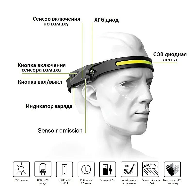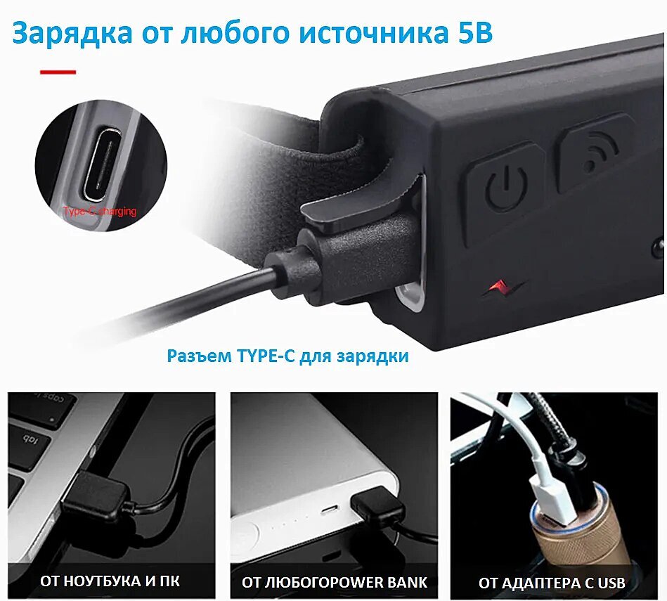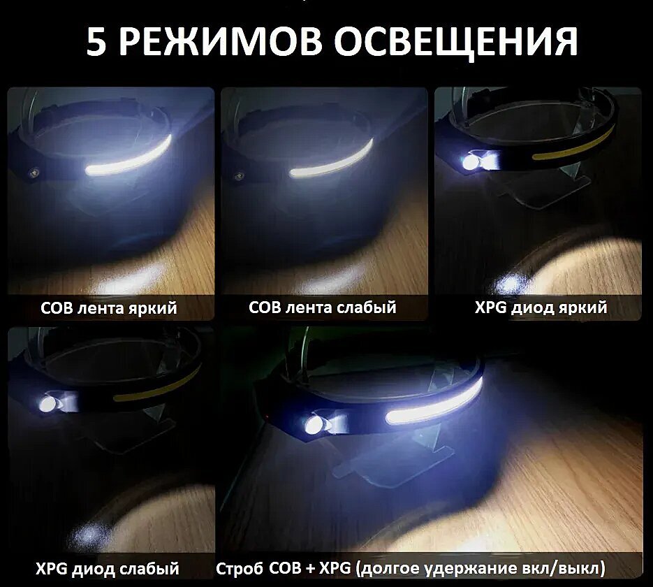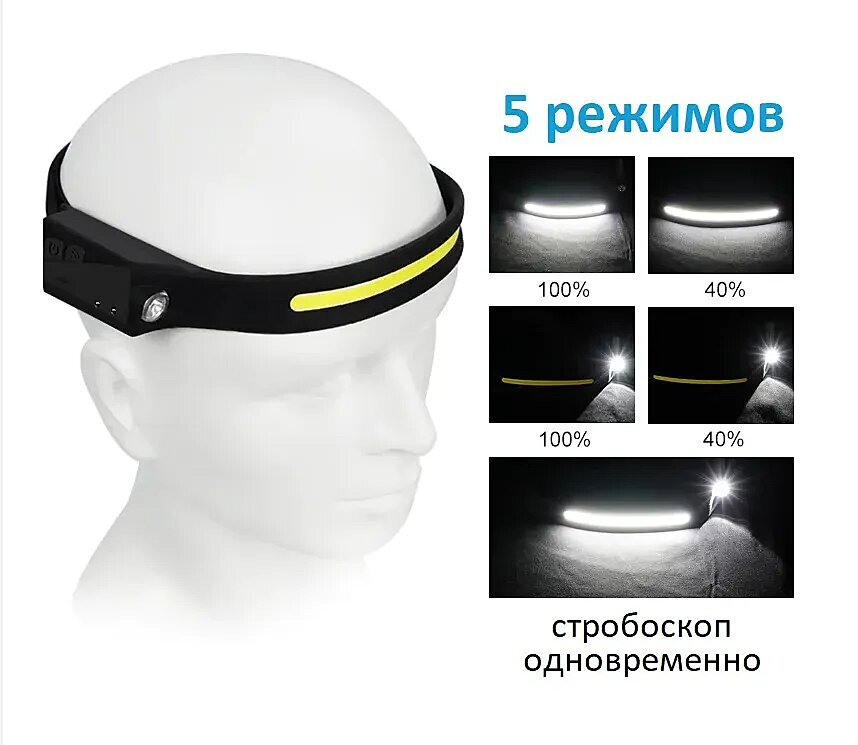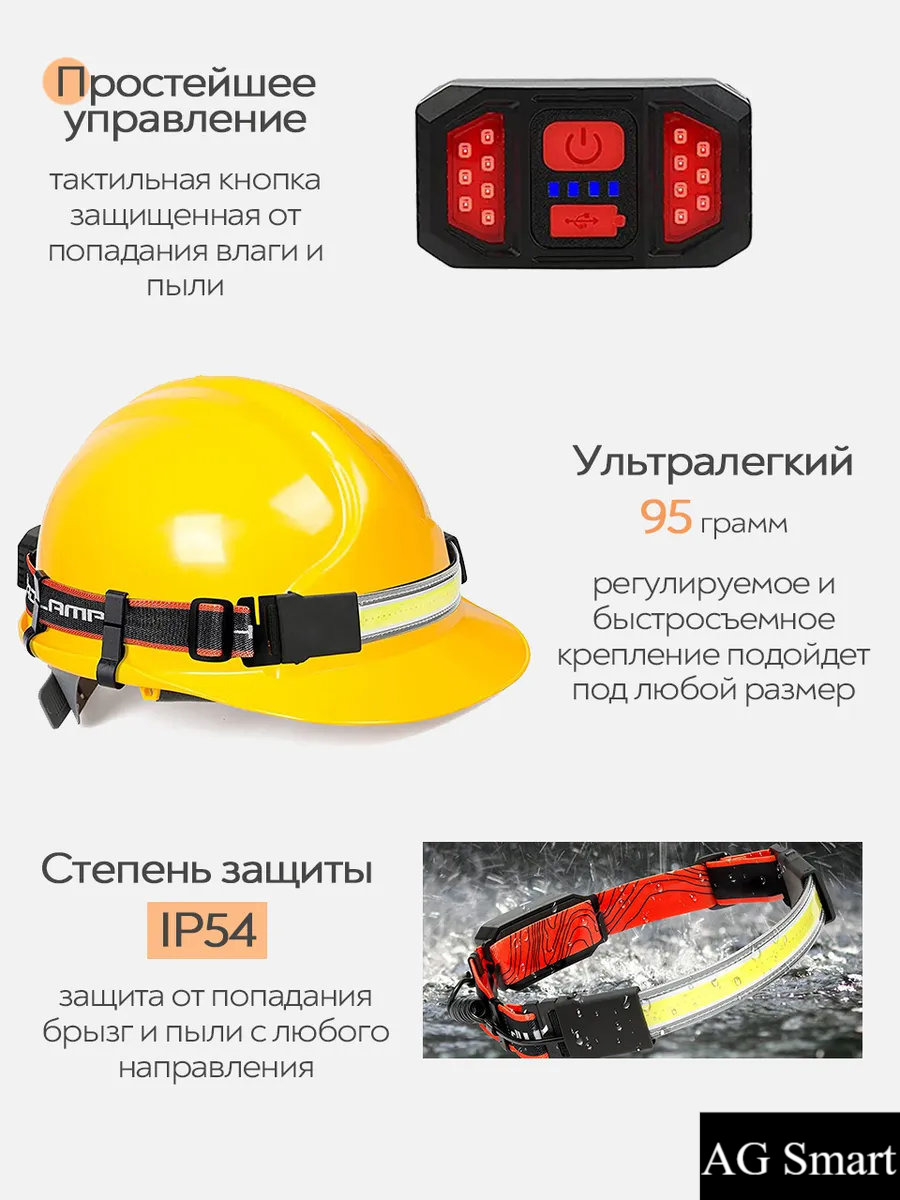 Налобный светодиодный фонарь AG Smart / Мощный светодиодный/ Фонарик аккумуляторный