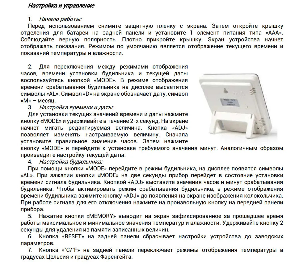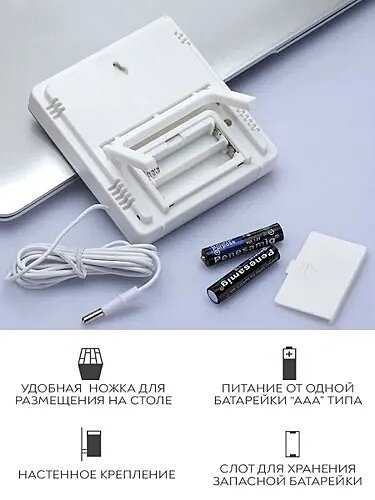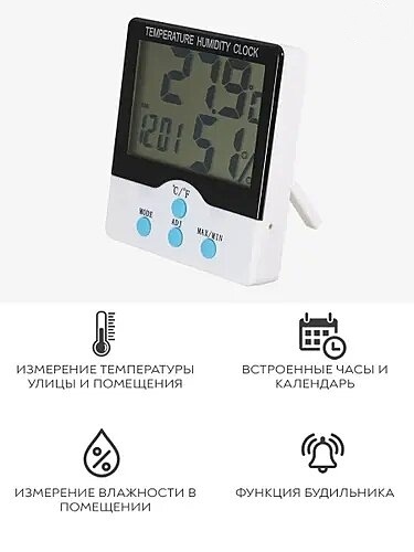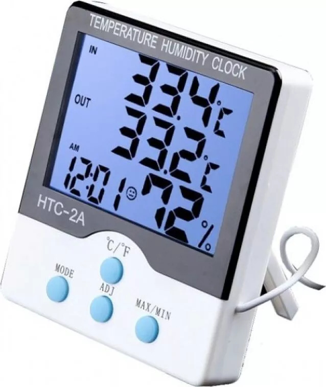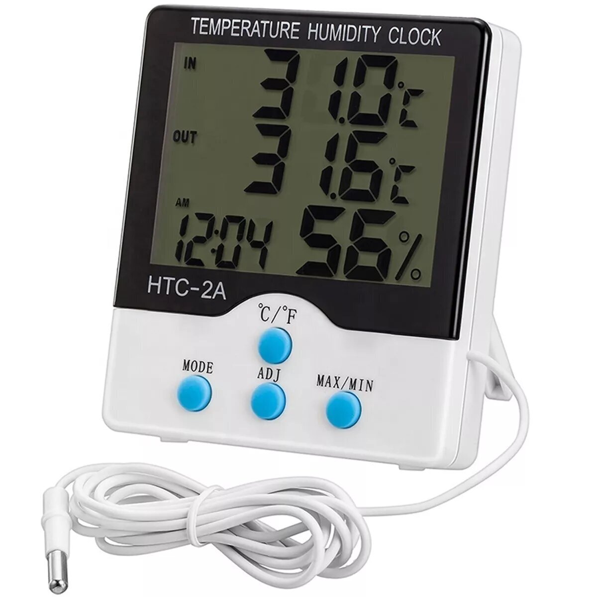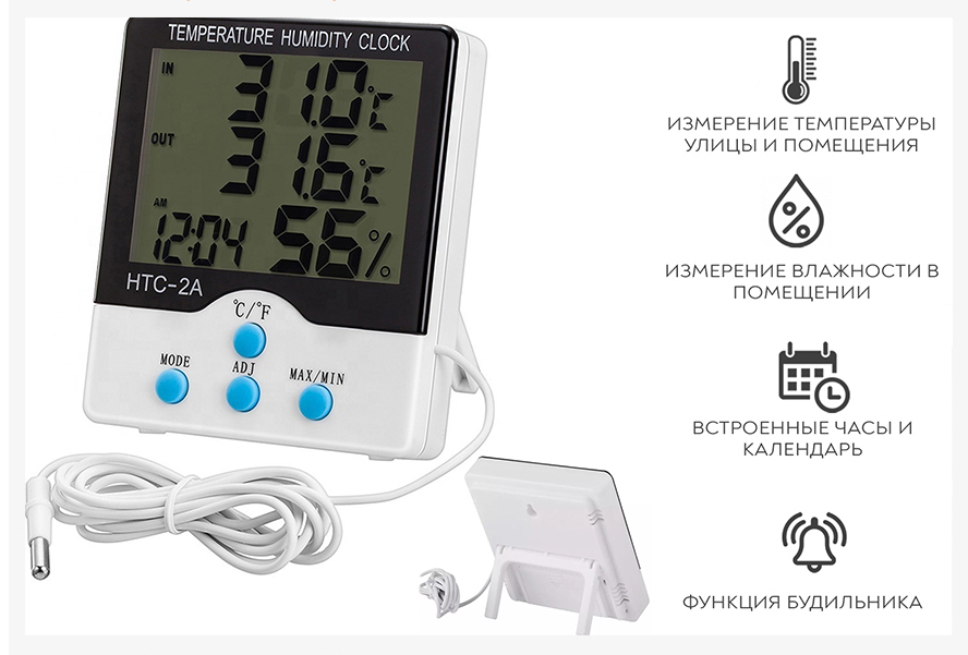 Цифровой термометр с LCD дисплеем и гигрометром AG Smart,c часами и выносным датчиком HTC-2A