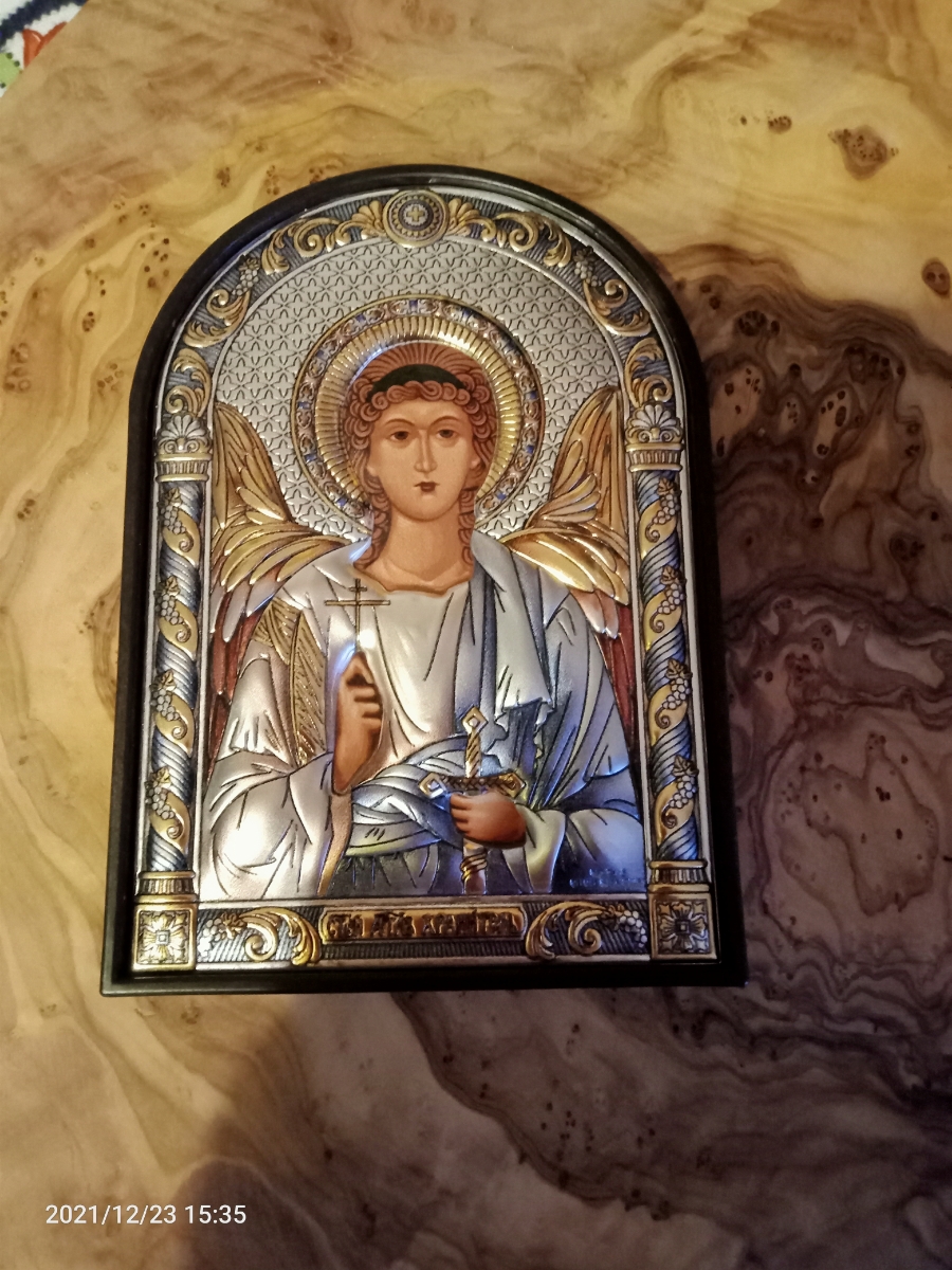 Икона серебряная греческая Agio Silver Ангел Хранитель 10х14 см.