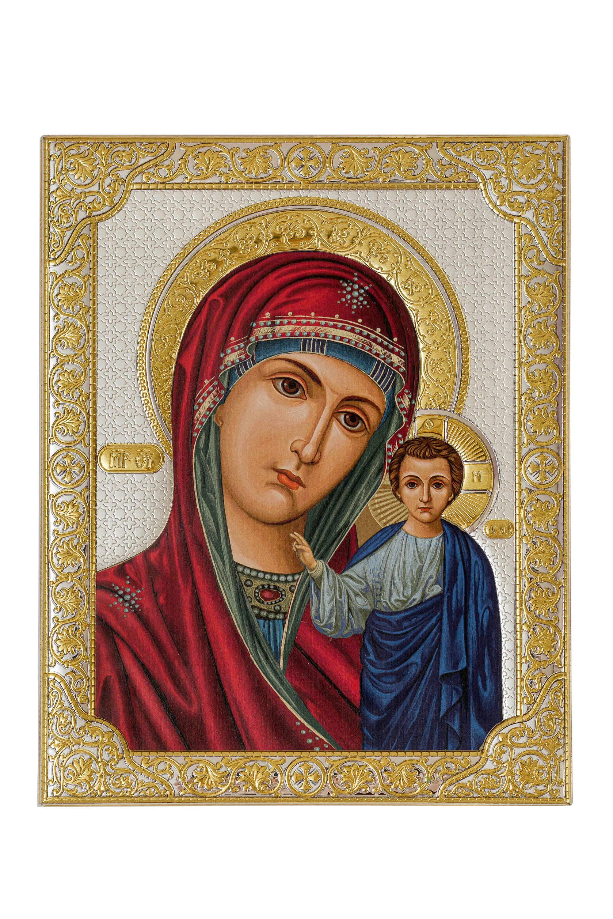 Икона Греческая Agio Silver Казанская Божья Мать 12Х16 см.