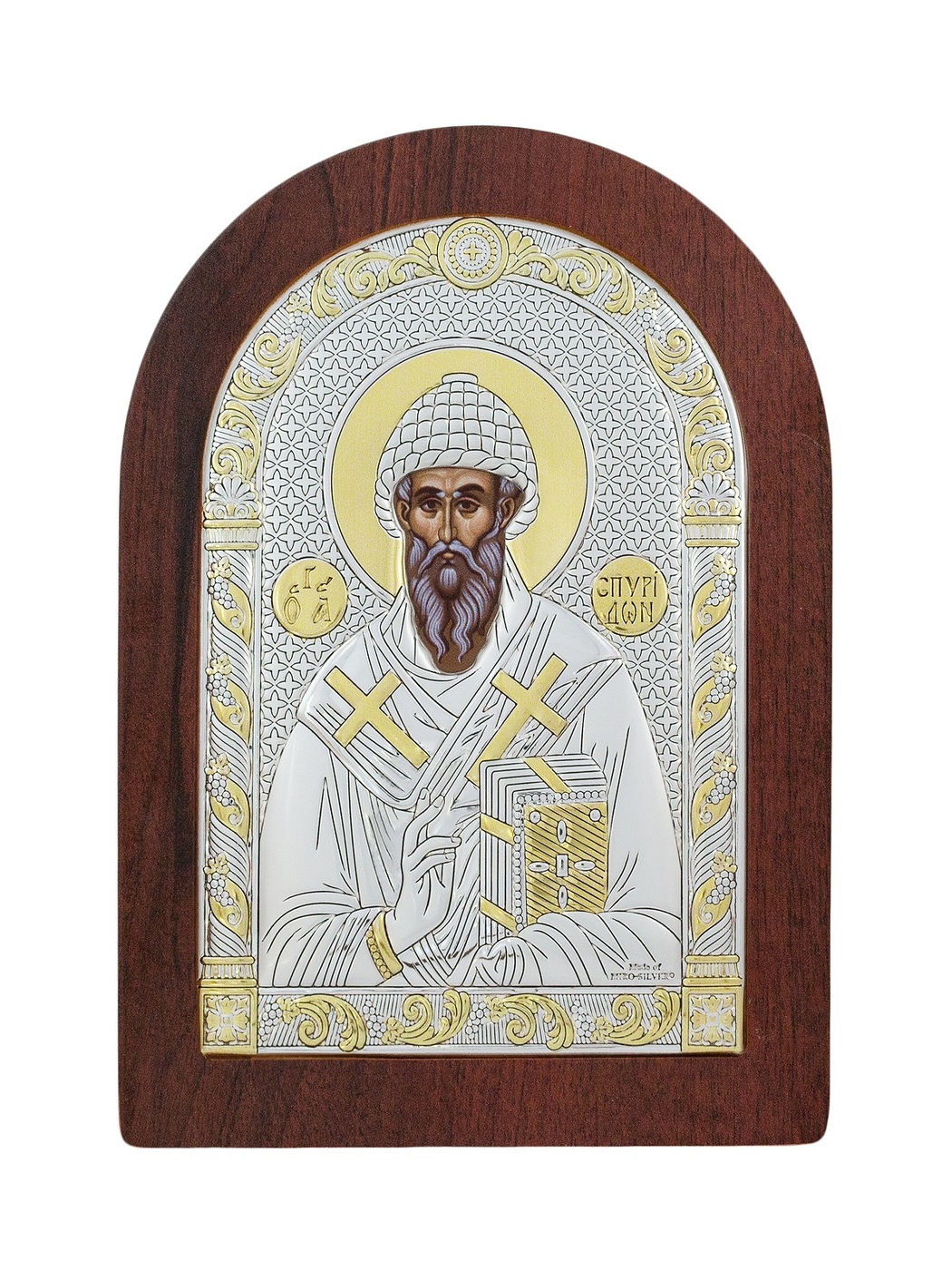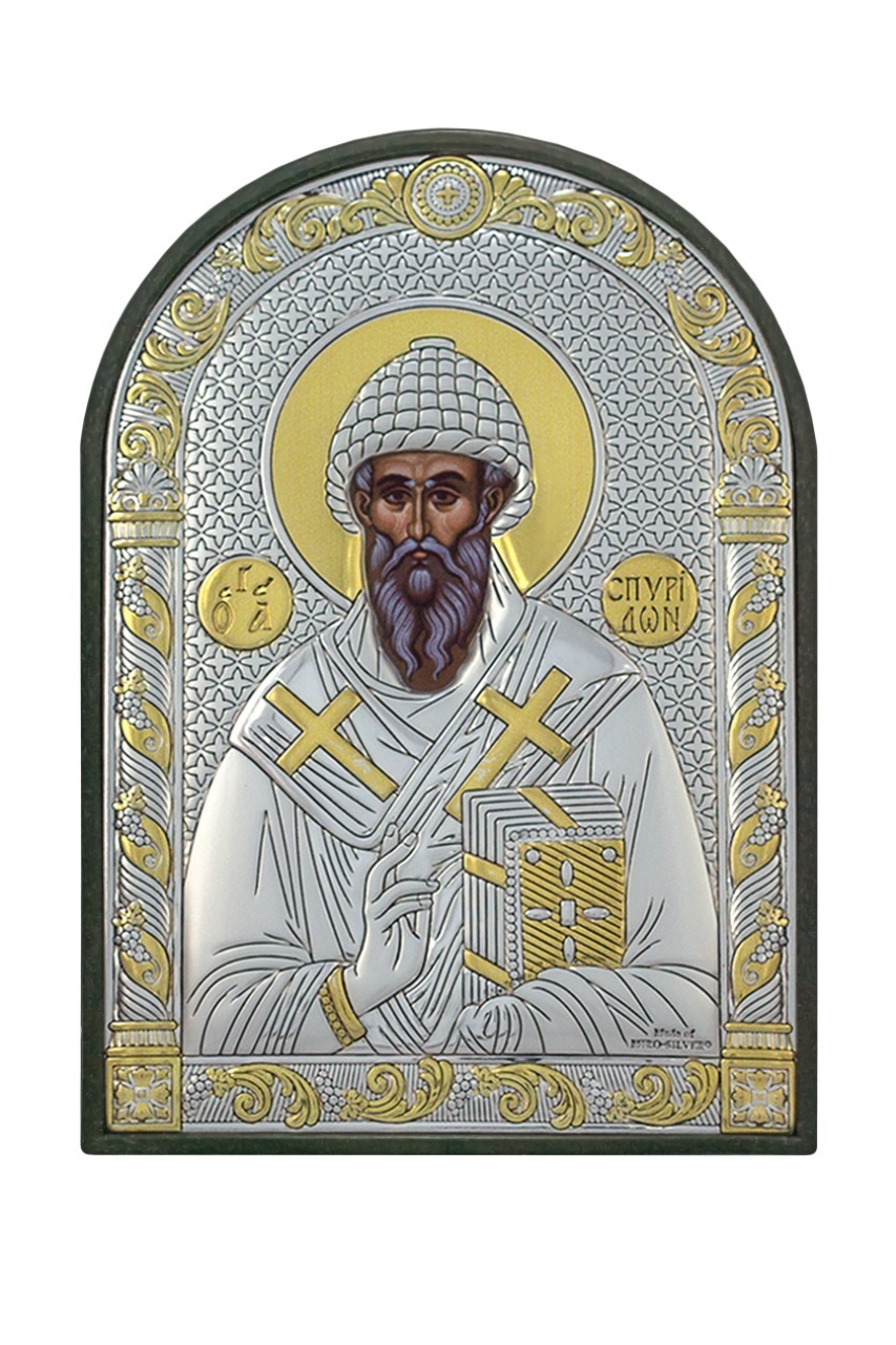 Икона Греческая Agio Silver Спиридон Тримифунтский 12Х16 см.