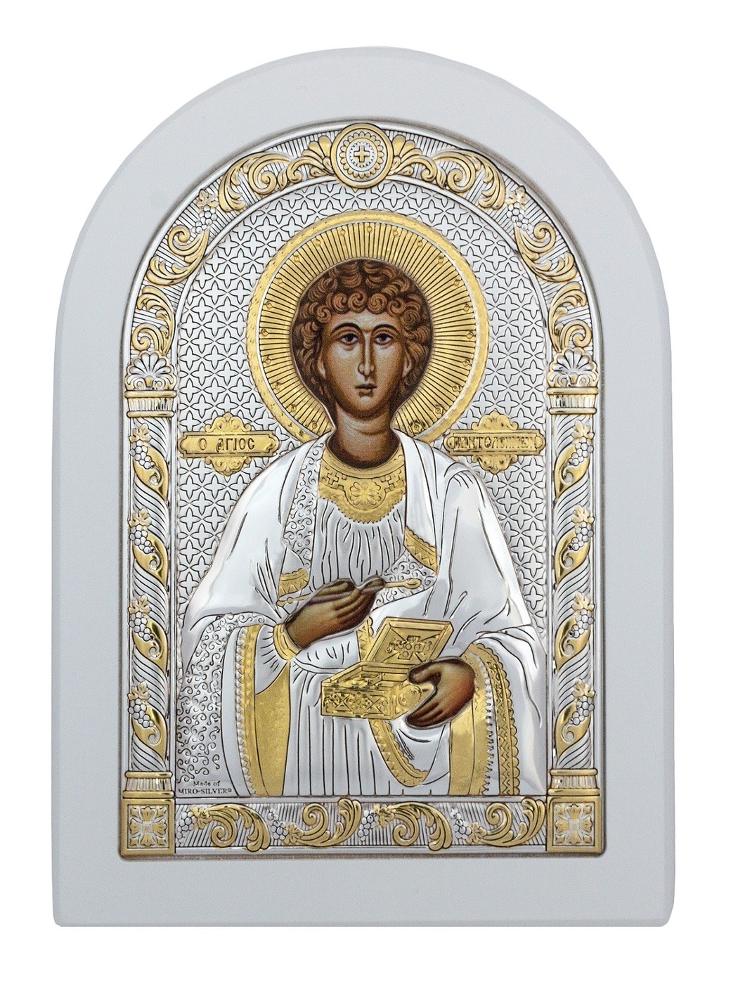 Икона Греческая Agio Silver Пантелемон Целитель 12Х16 см.