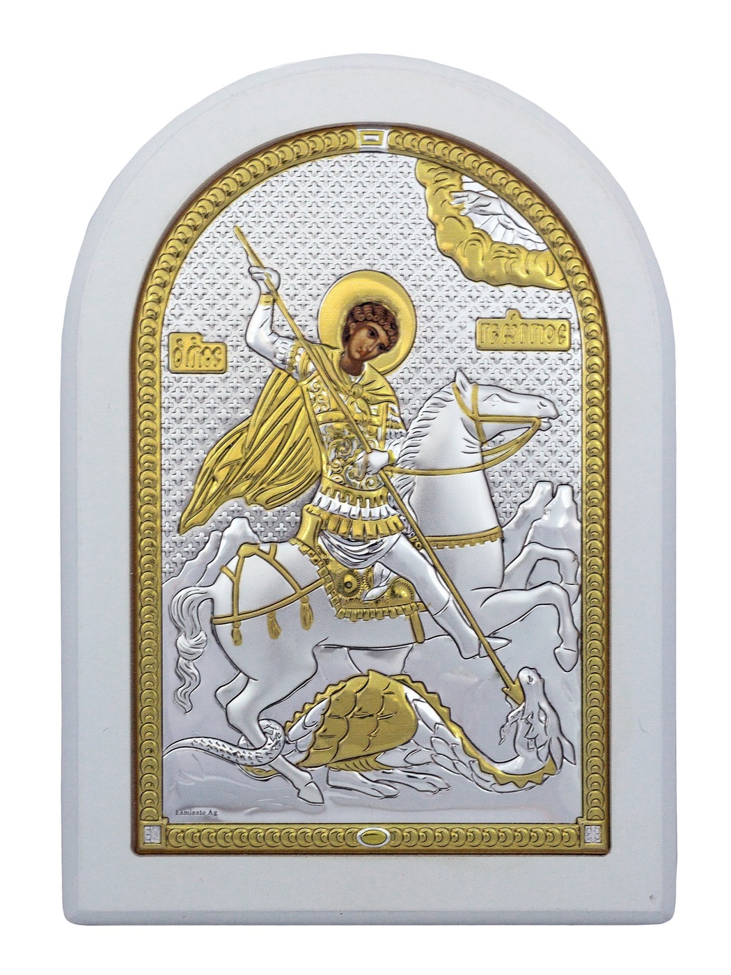 Икона Греческая Agio Silver Георгий Победоносец 12Х16 см.