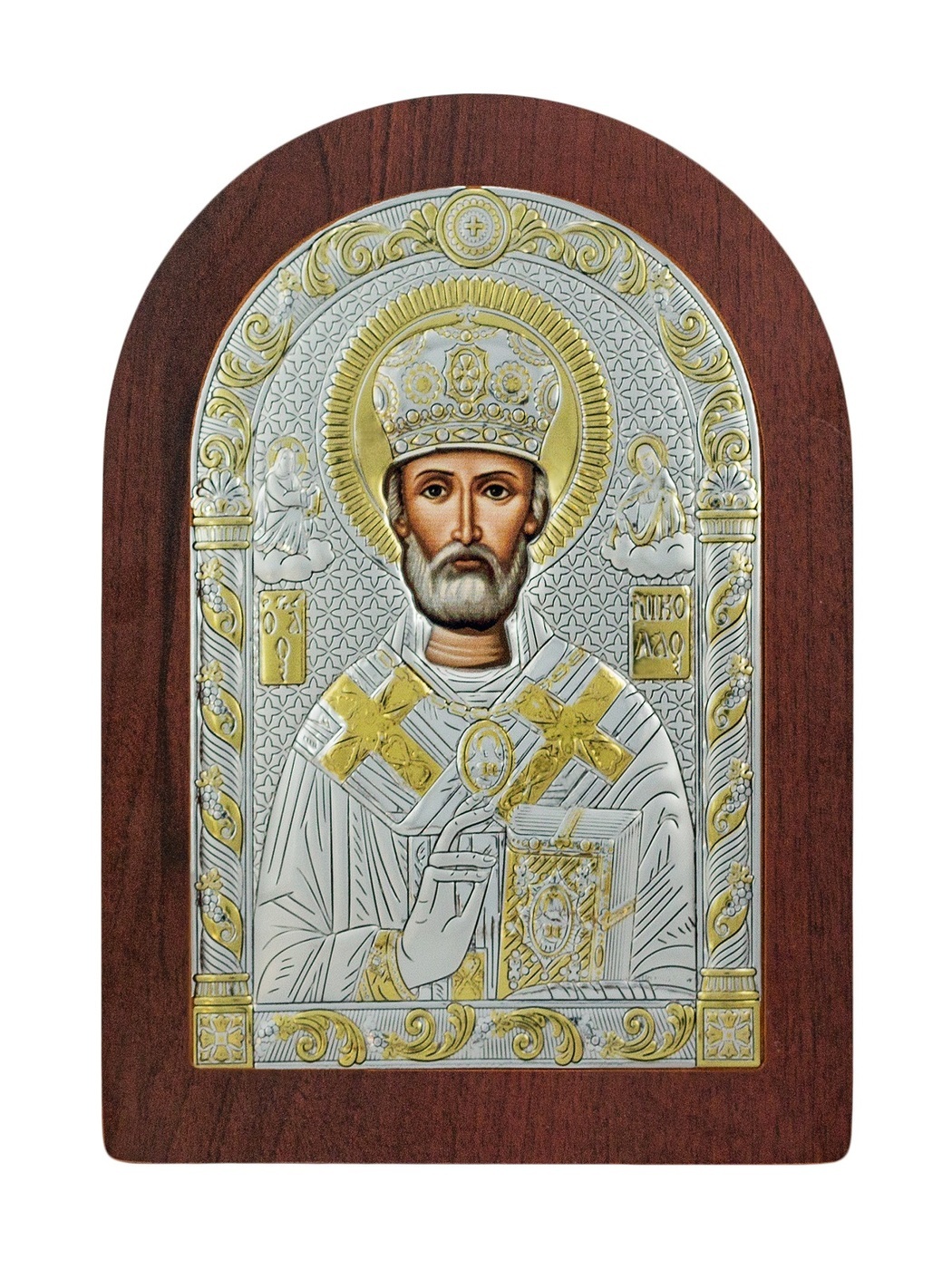 Икона Греческая Agio Silver Николай Чудотворец 12Х16 см.