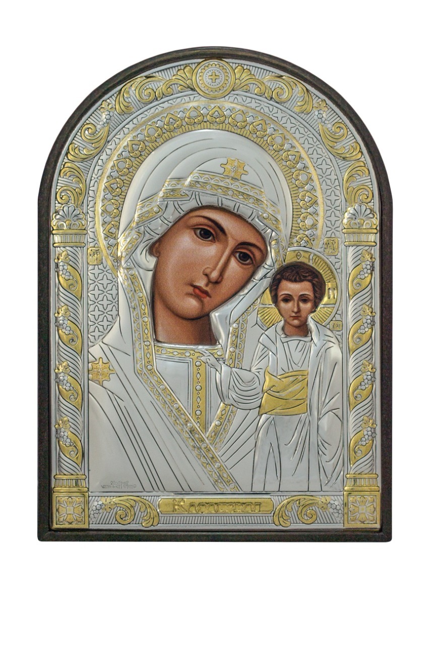Икона Греческая Agio Silver Казанская Божья Мать 8Х10 см.
