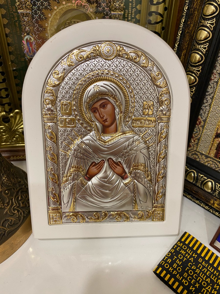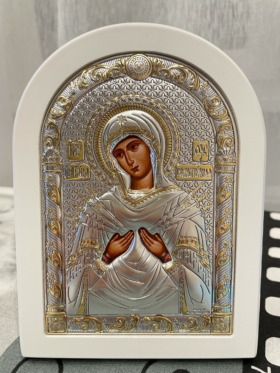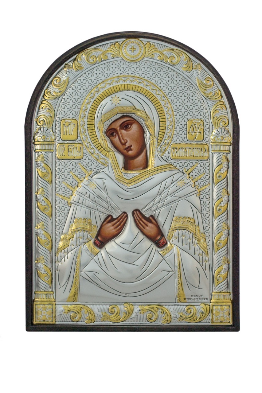 Икона серебряная греческая Agio Silver Семистрельная Божья Матерь 10х14 см.