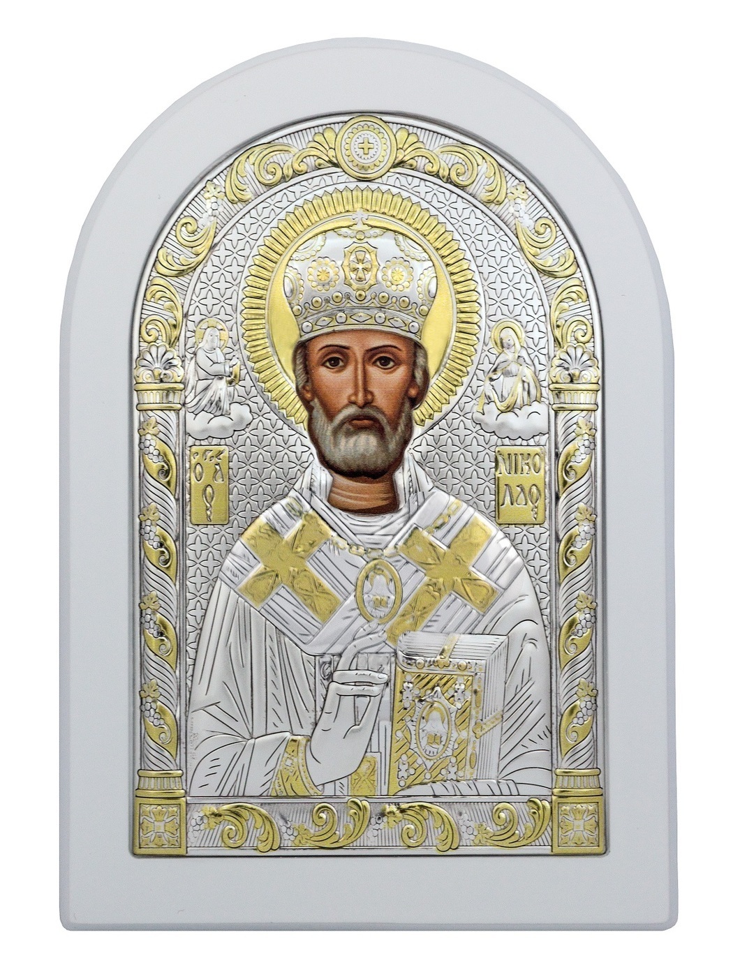 Икона Греческая Agio Silver Николай Чудотворец 12Х16 см.