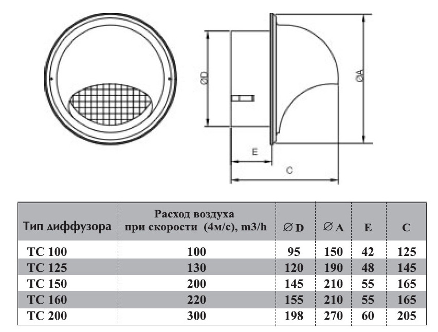 Диффузор вентиляционный приточно вытяжной 200 мм, анемостат TC-200 стальной клапан-дефлектор