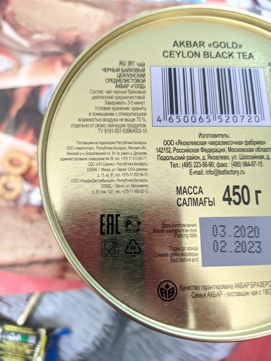 Akbar Gold черный листовой чай, 450 г (ж/б)