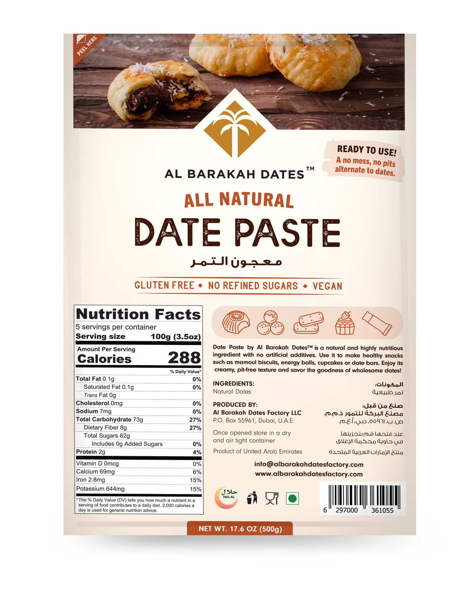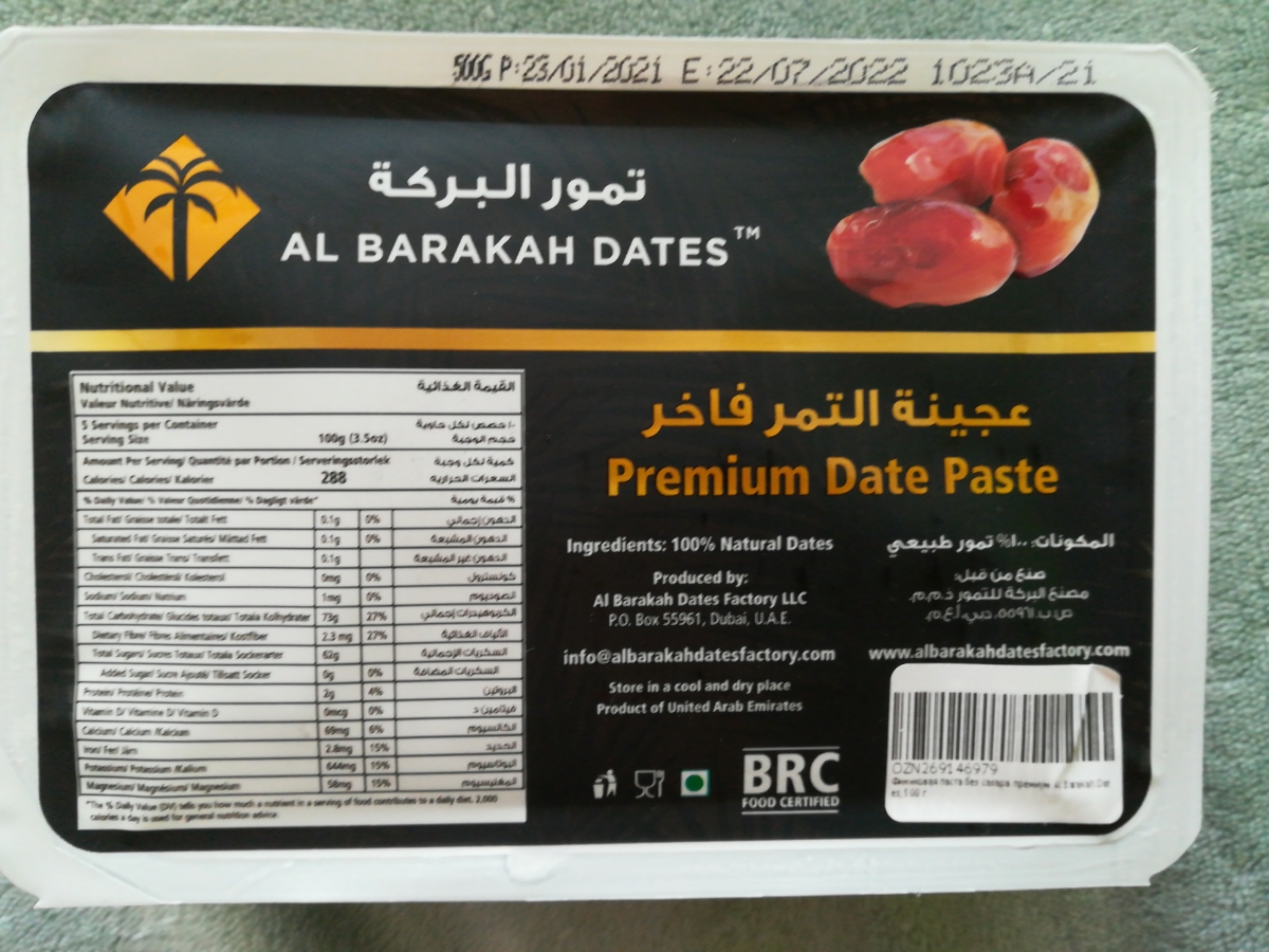 Финиковая паста без сахара, 100% финики без добавок, 500 г, "AL BARAKAH DATES"