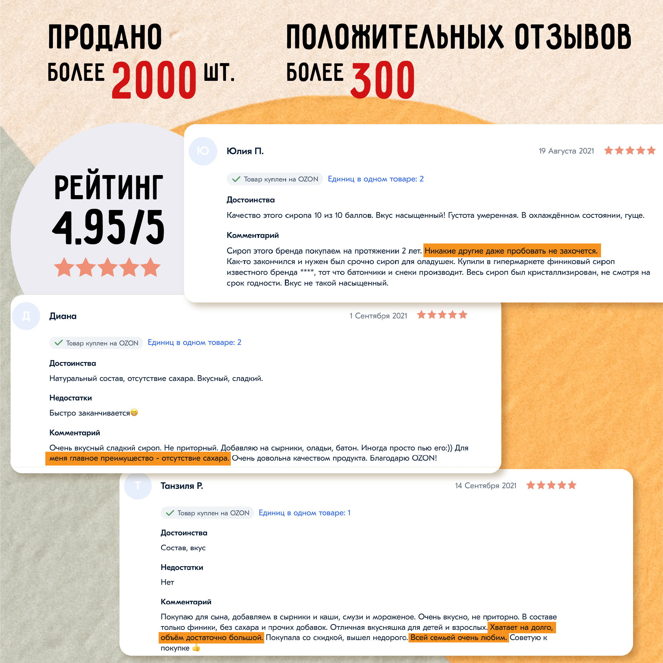 Финиковый сироп 400г.натуральный без сахара/для кофе, коктейлей и выпечки.