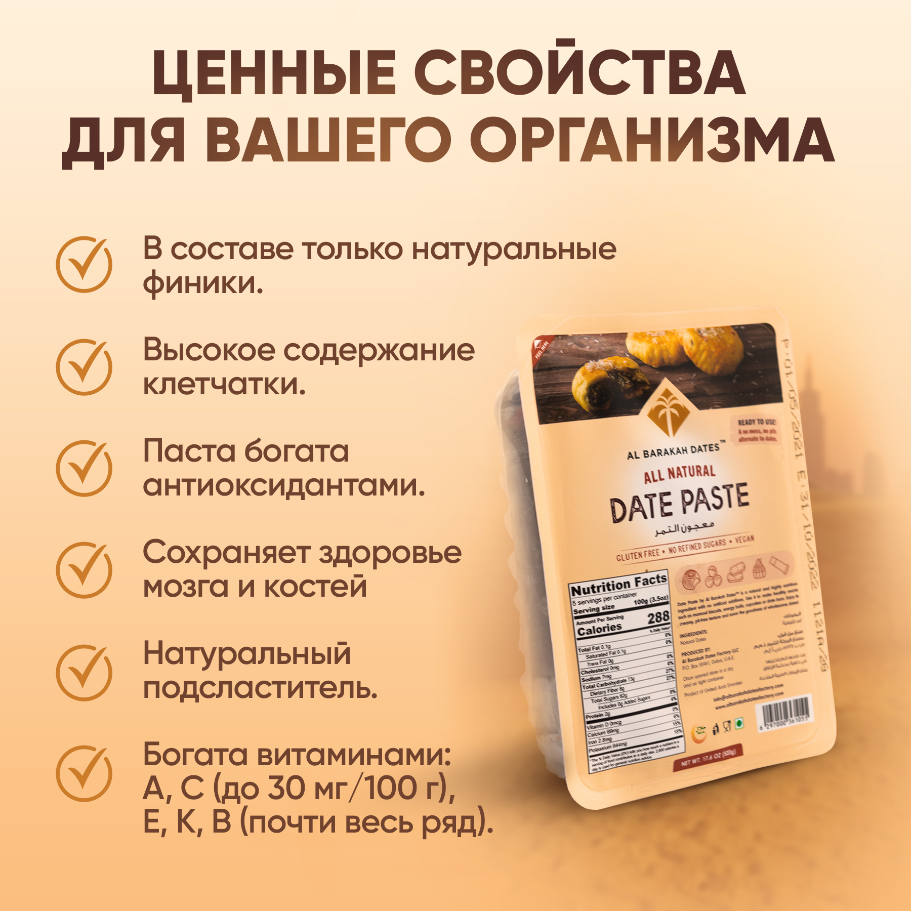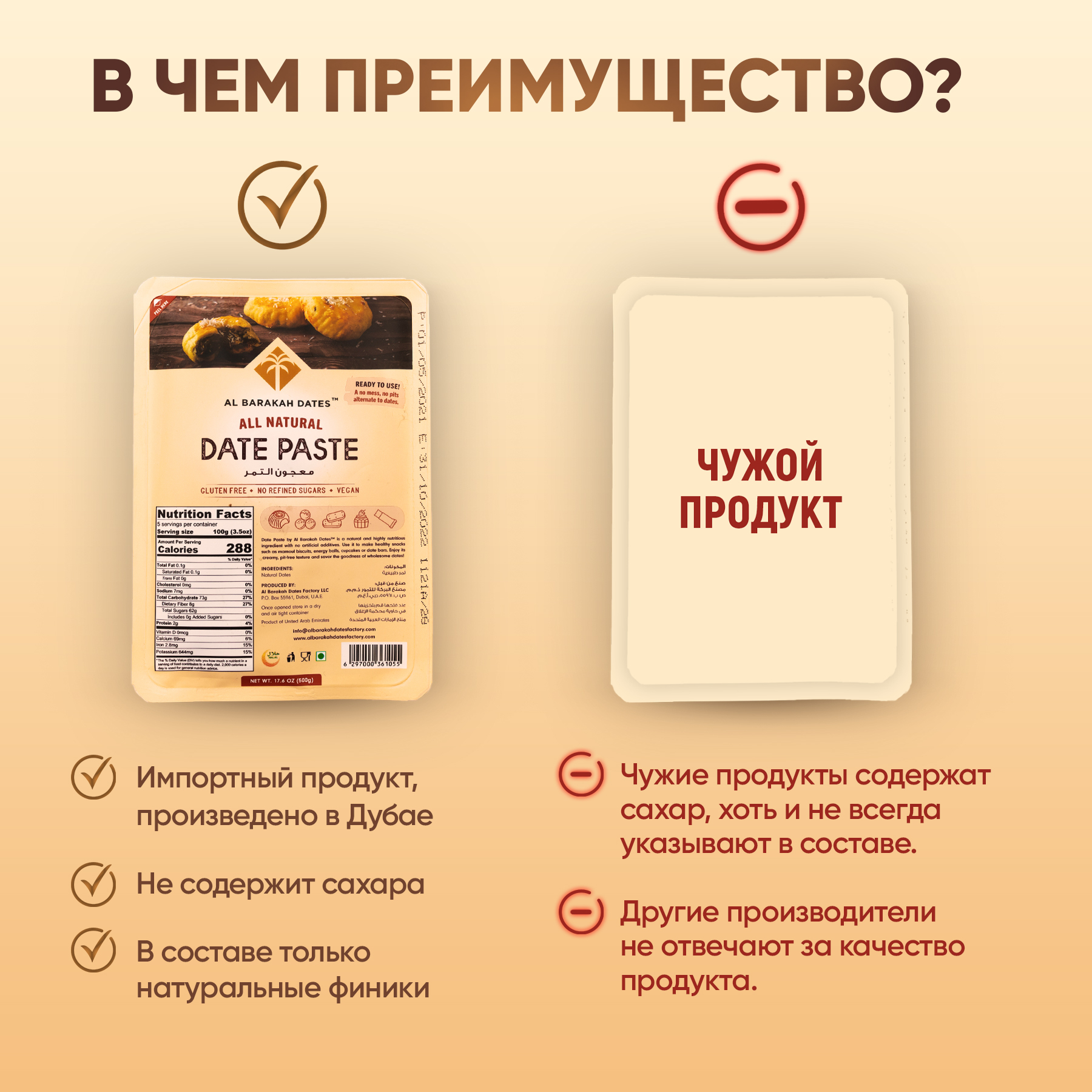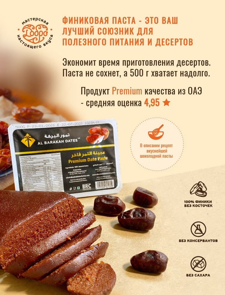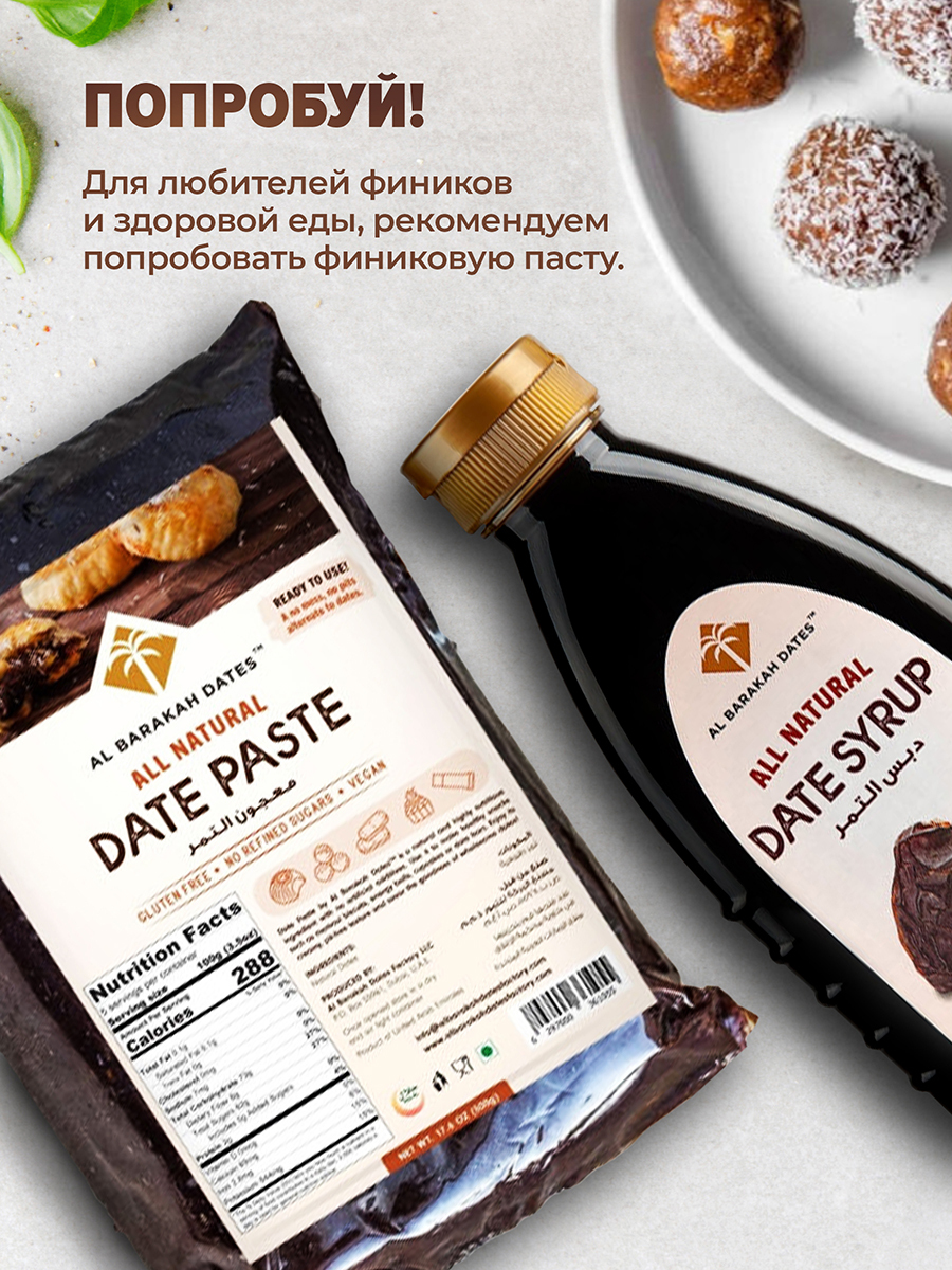 Финиковая паста без сахара премиум / Паста финиковая без сахара/ Без сахара/ Финиковый урбеч/ Фруктовая паста / Финики натуральные Al Barakah Dates, 500 г