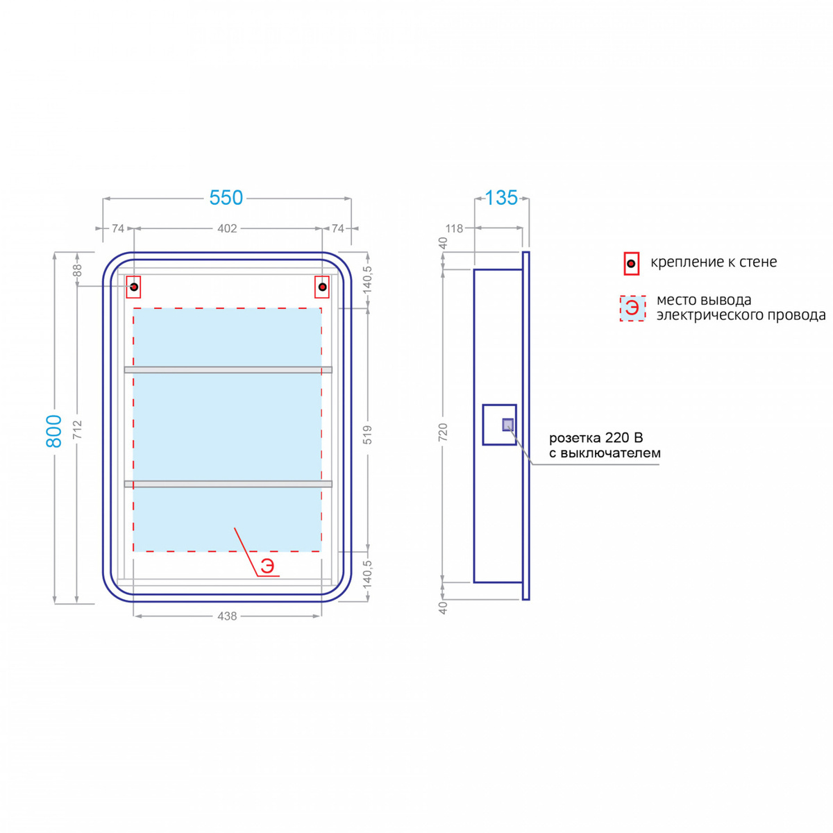 Зеркало-шкаф Alavann, 55х15х80 см, Lana 55