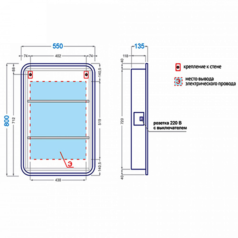Зеркало-шкаф Alavann, 55х15х80 см, Lana