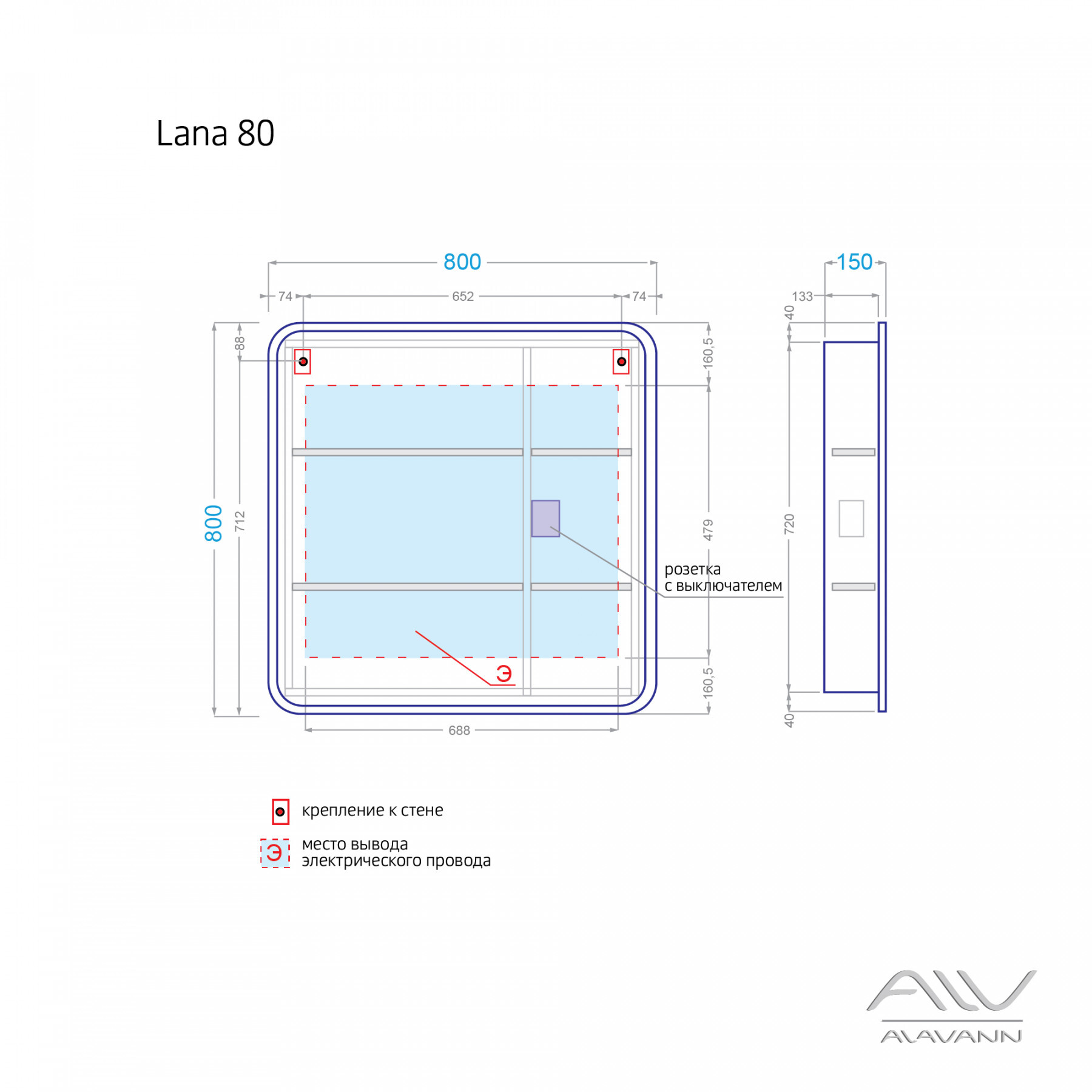Зеркало-шкаф Alavann, 80х15х80 см, Lana 80
