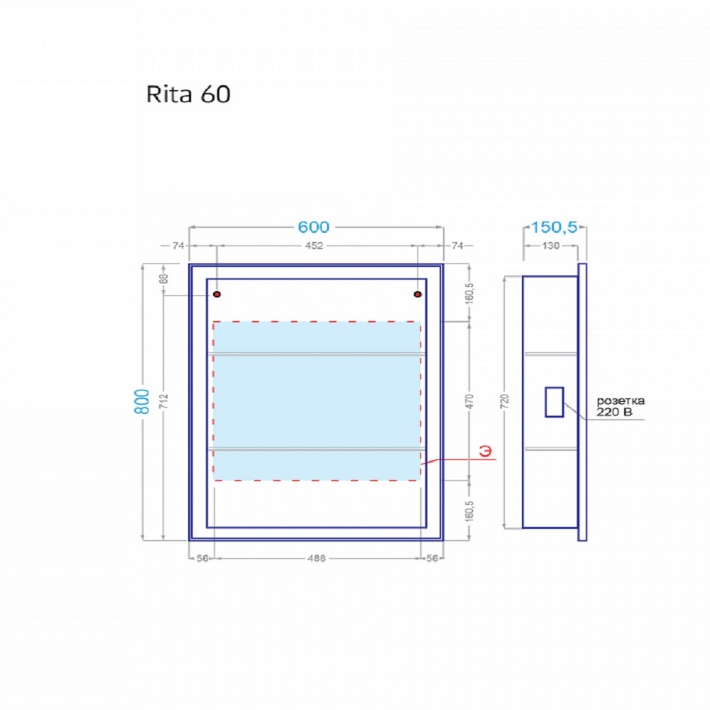 Зеркало-шкаф Alavann, 60х15х80 см, Rita 60