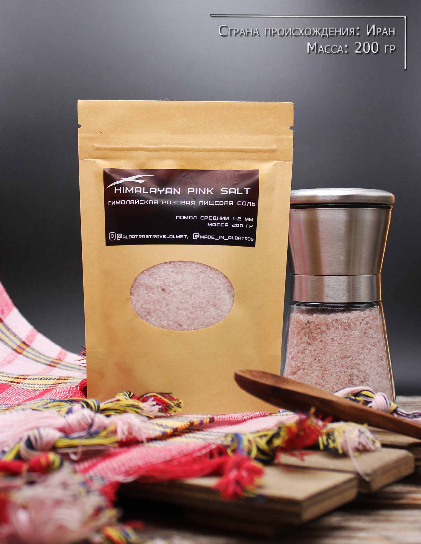 Гималайская розовая соль (Помол 1-2 мм) пищевая, Альбатрос 200 г.