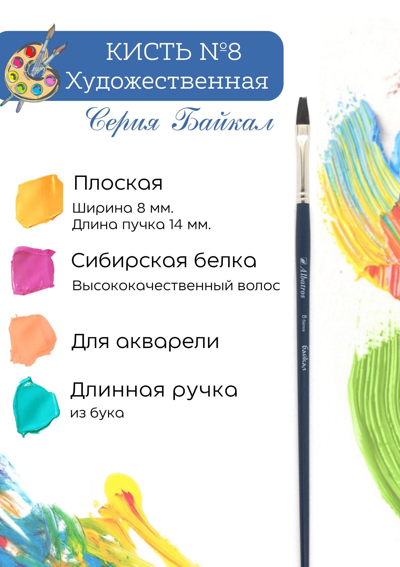 Кисть художественная Альбатрос "Байкал" №8 плоская, волос белки