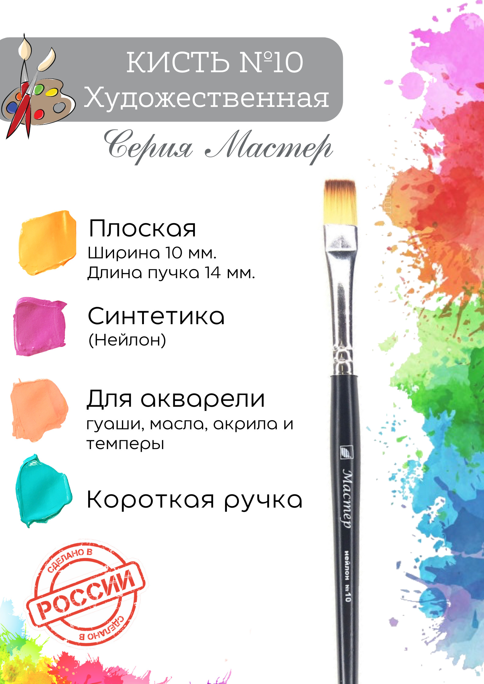 Кисть художественная Альбатрос "Мастер" №10 плоская, нейлон