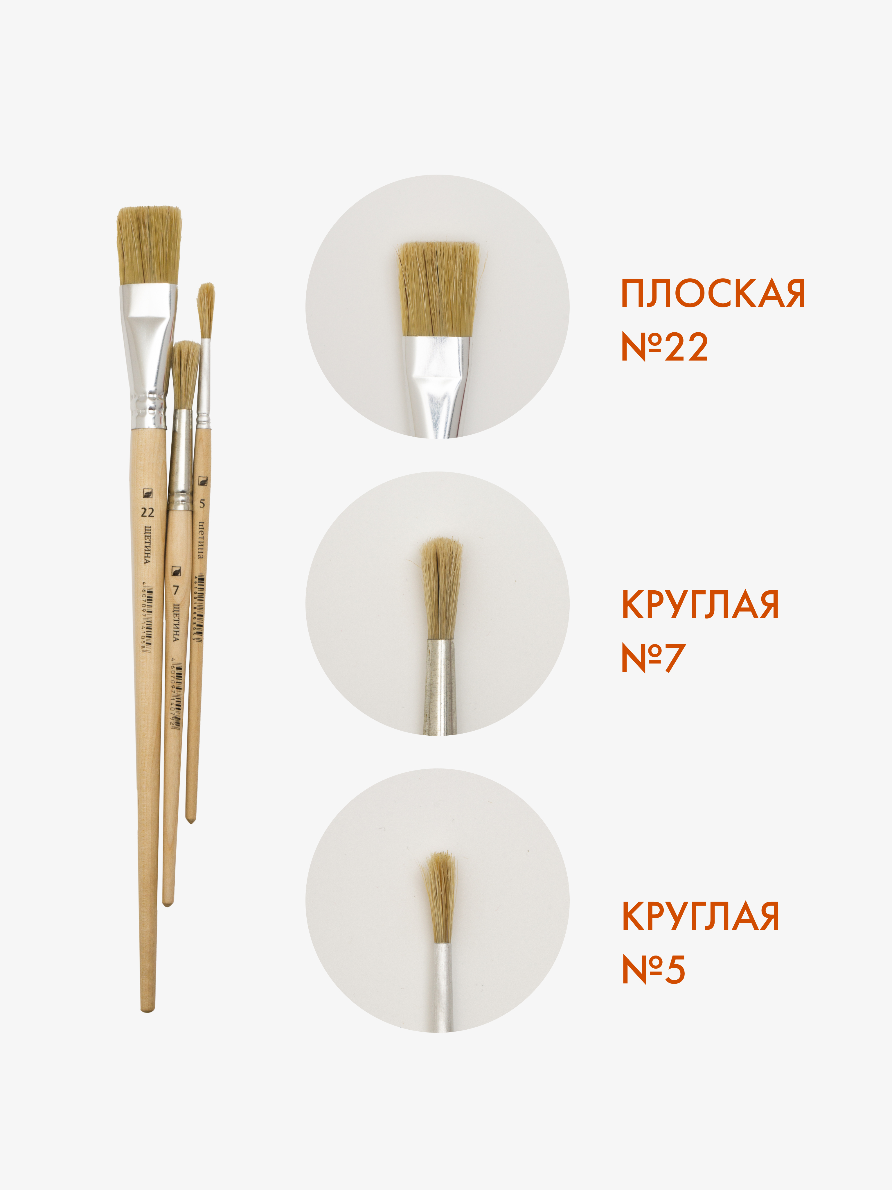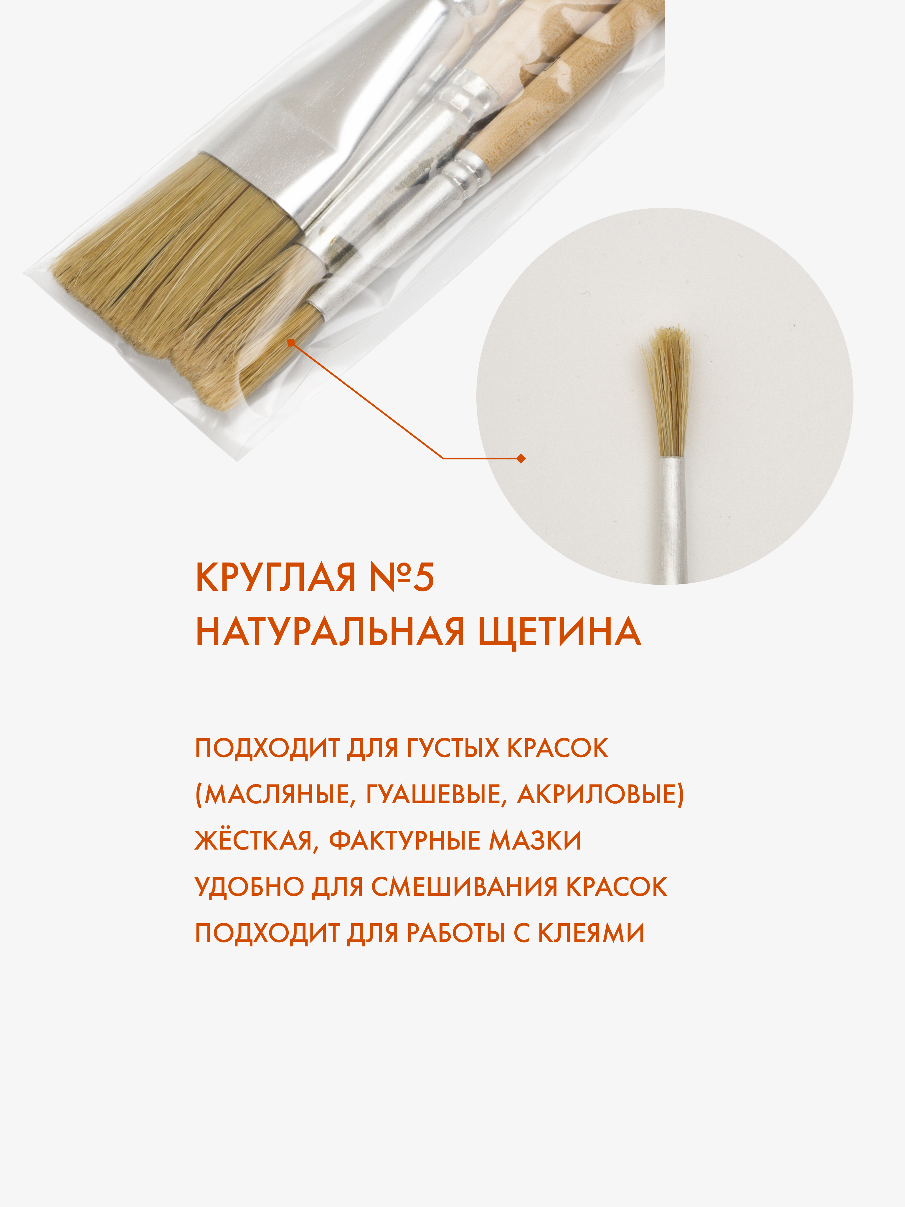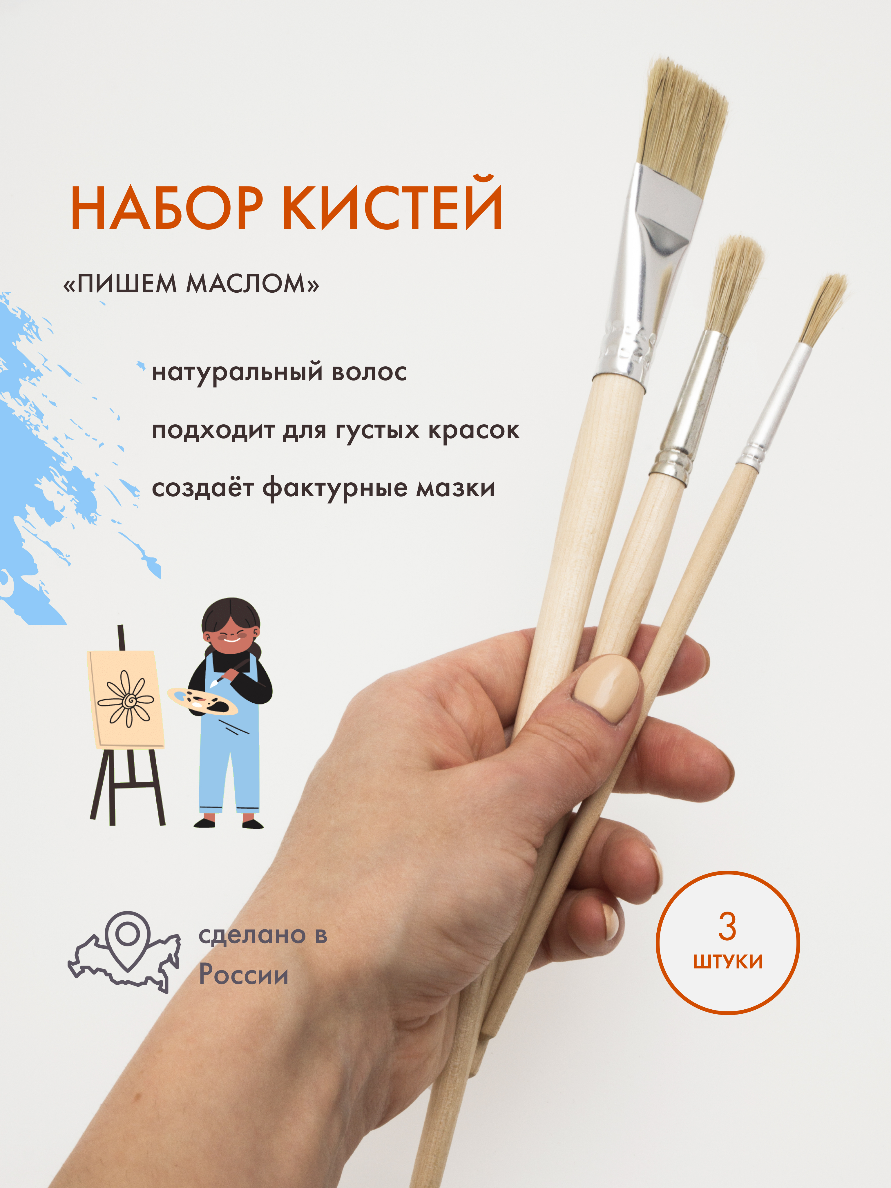 Набор художественных кистей Альбатрос "Пишем маслом" 3 шт. из натуральной щетины