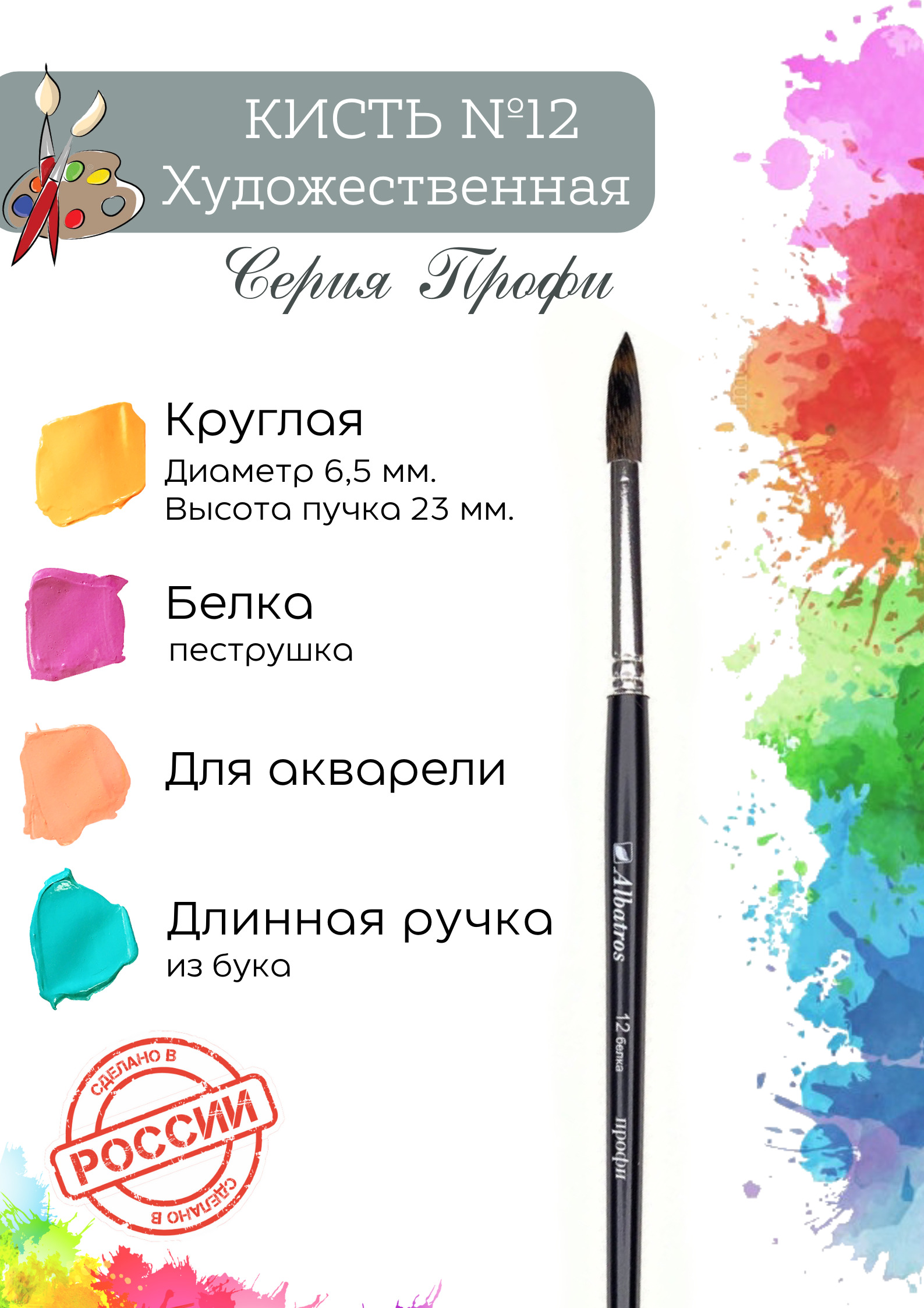 Кисть художественная Альбатрос "Профи" №12 круглая, волос белки