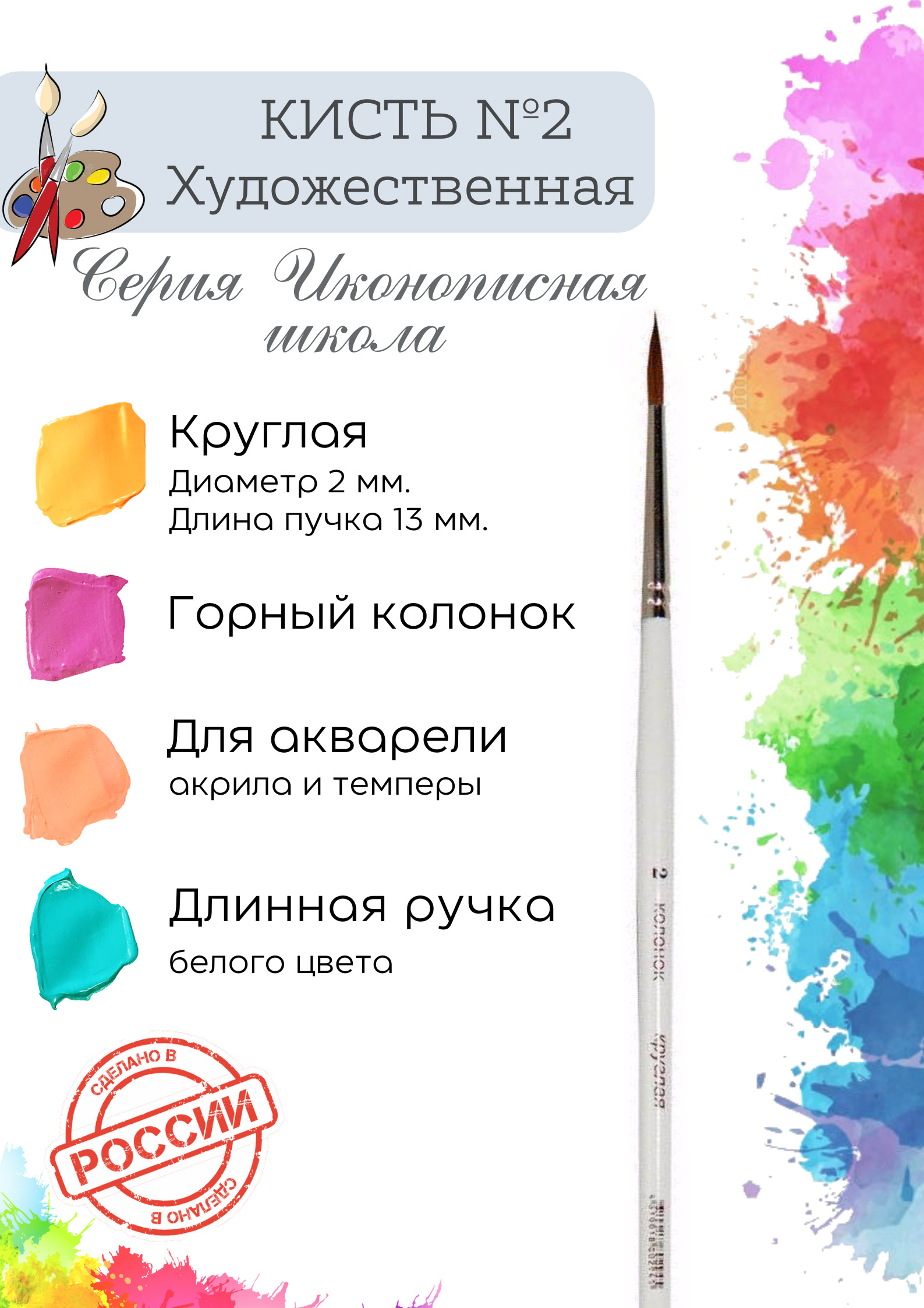 Кисть художественная Альбатрос "Иконописная Школа" №2 круглая, из волоса горного колонка