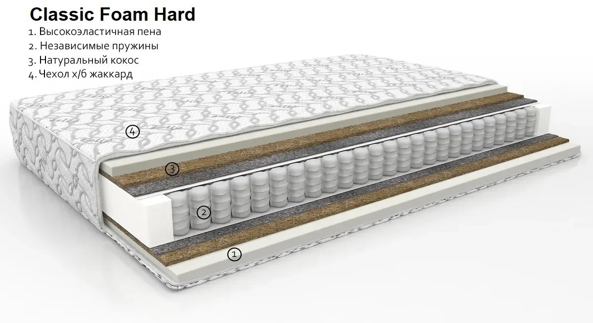 Матрас, Анатомический матрас Albero Foam Hard Полужесткий, Независимые пружины, 140х200 см