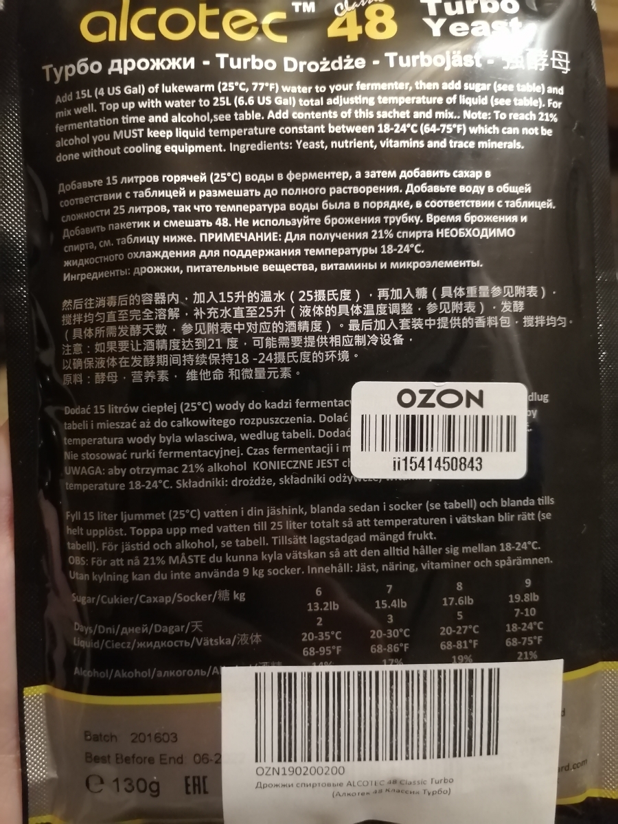 Спиртовые турбо дрожжи Alcotec Classic 48 Yeast