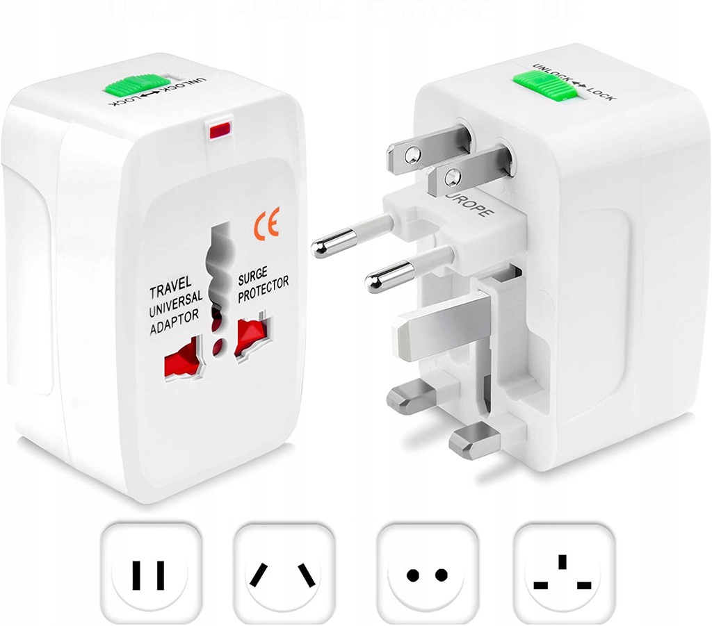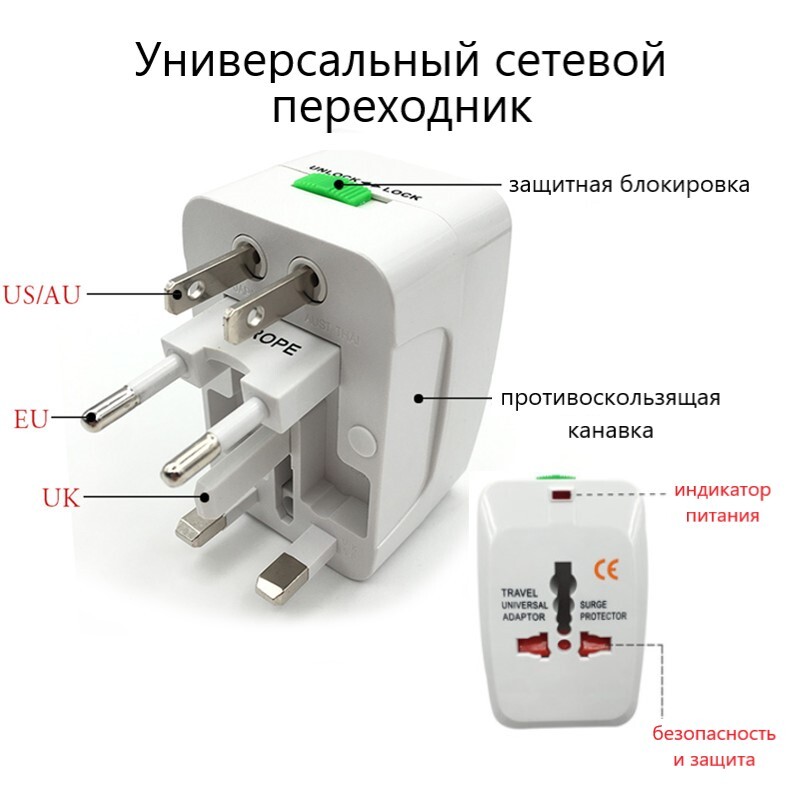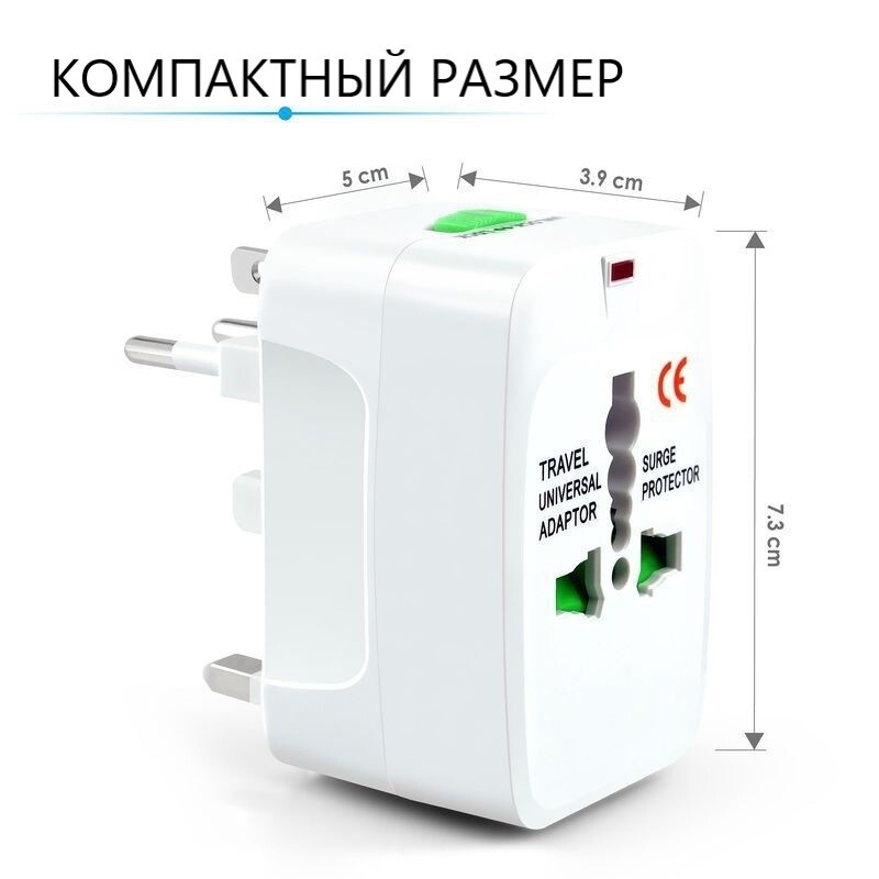 Универсальный переходник для розеток всех типов / Сетевой адаптер для путешествий / EU/US/UK/RU (A C G I) P2, 10 А, Белый