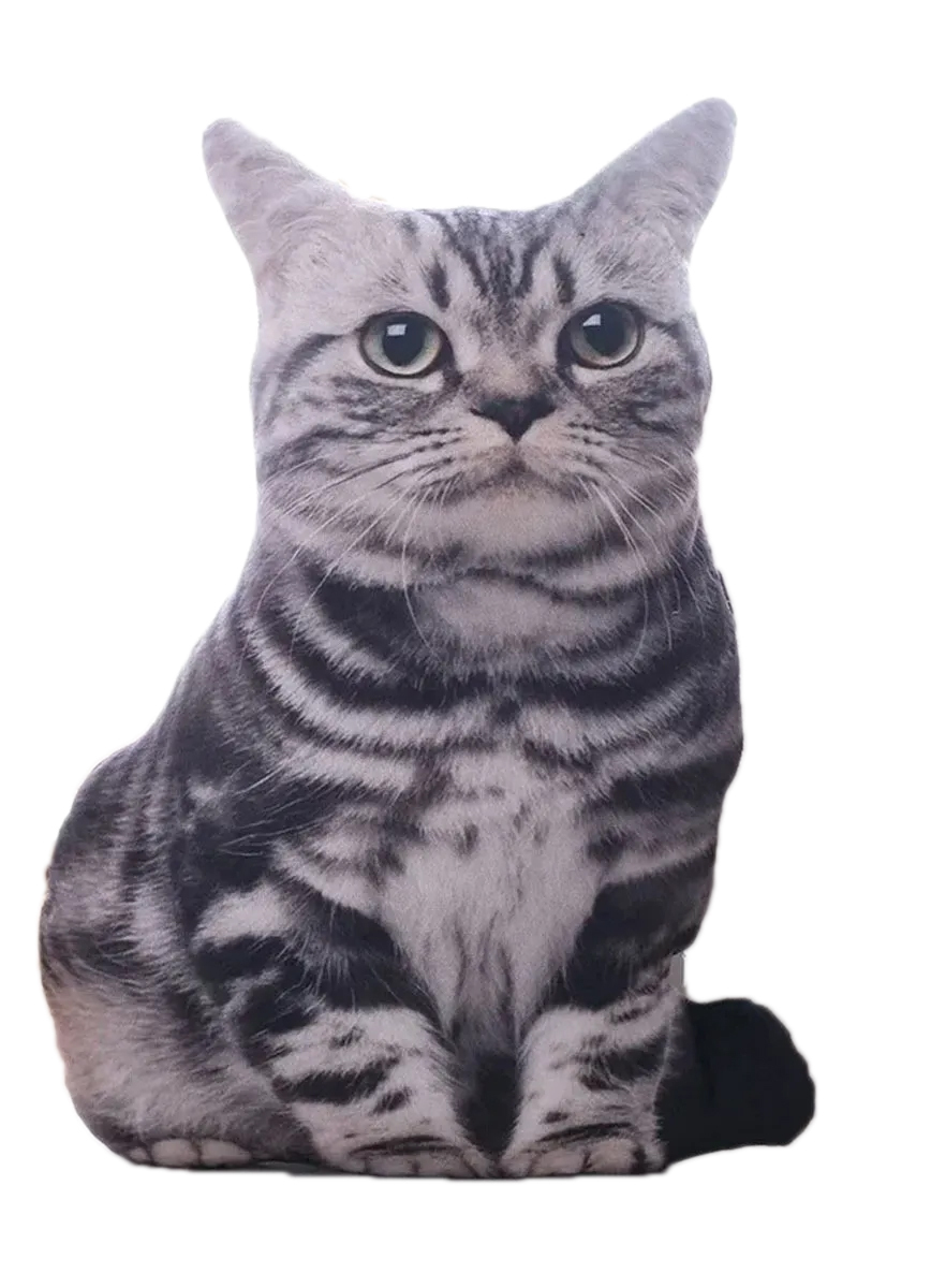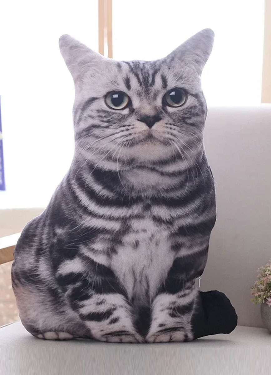 Подушка 3D "Реалистичный серый кот" 48 см.