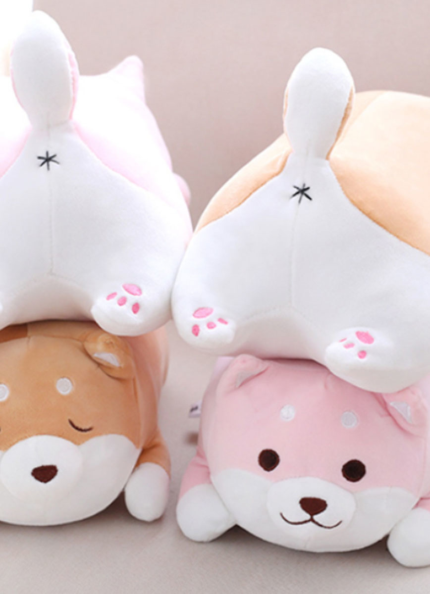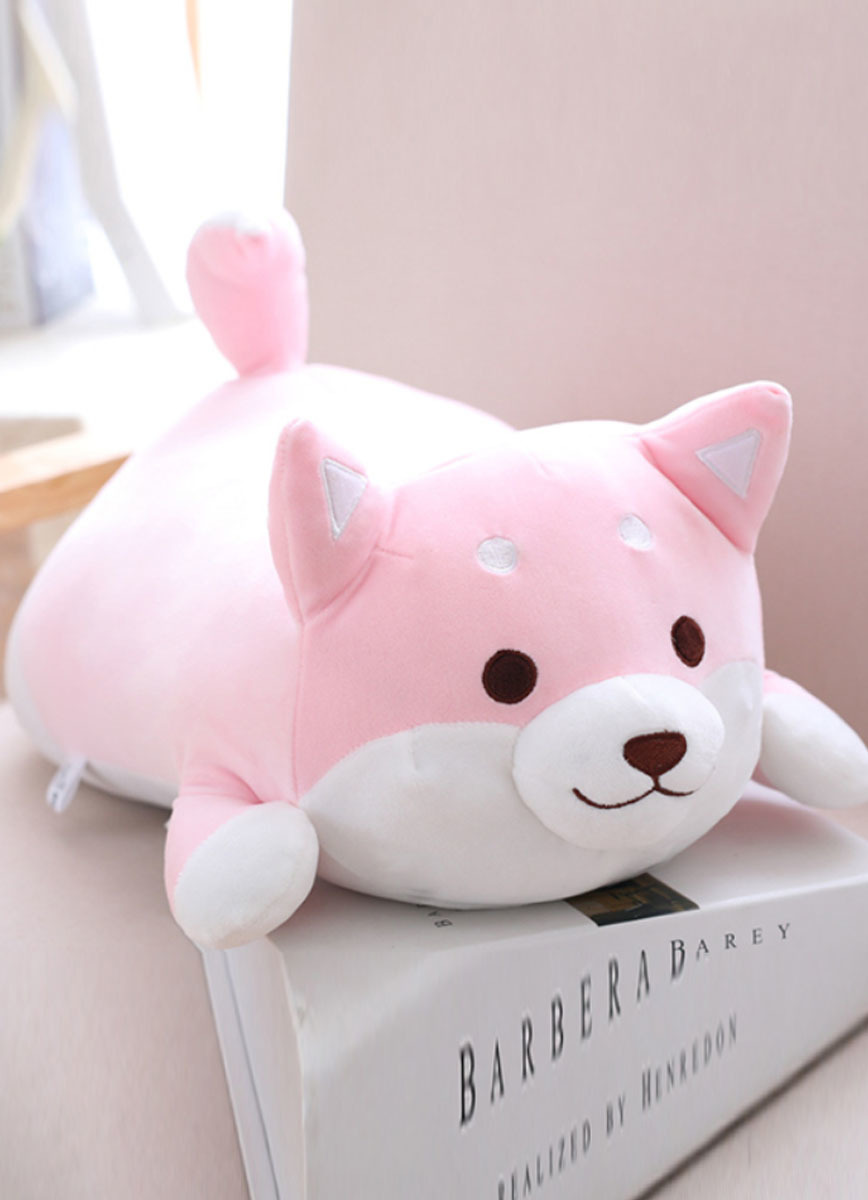 Подушка-обнимашка "Розовый корги с открытыми глазами" (35 см)