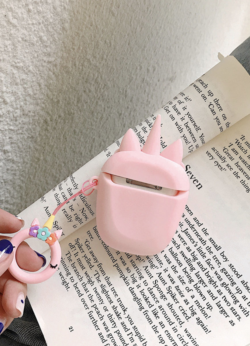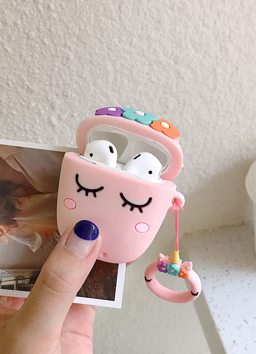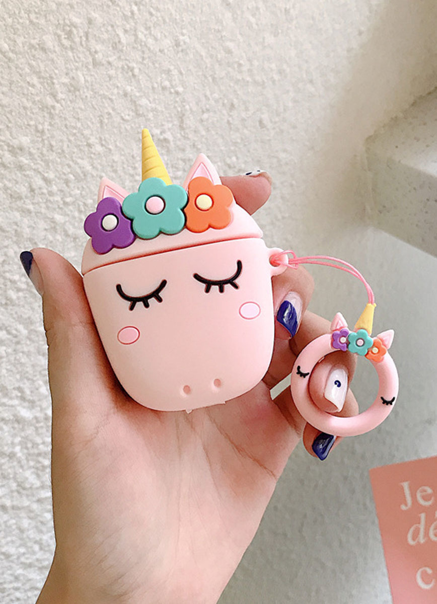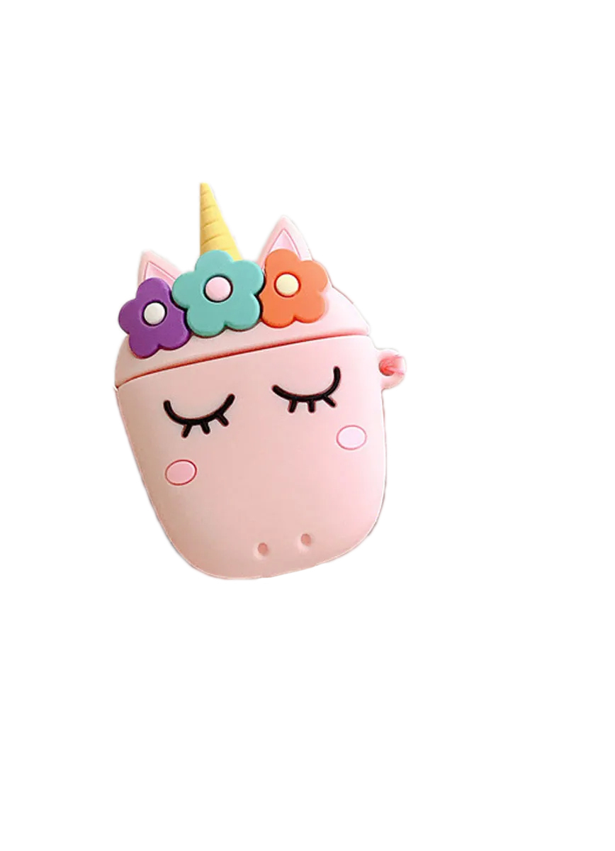 Чехол для AirPods 1/2 поколения "Розовый единорог с цветами"