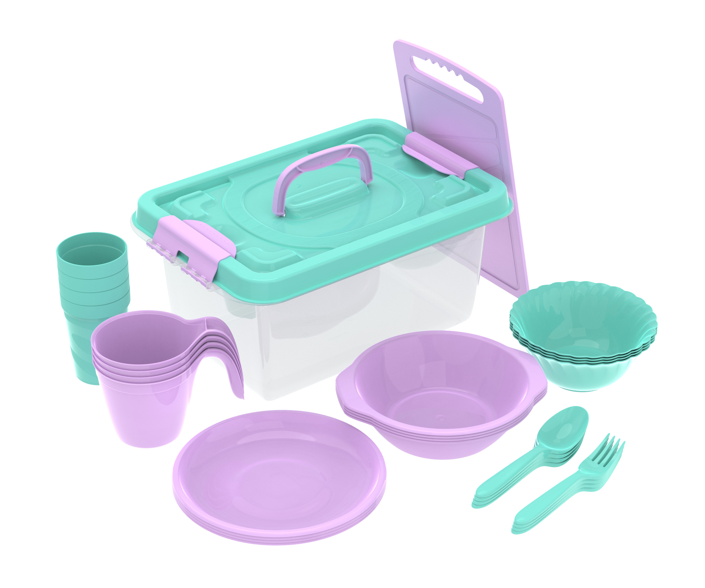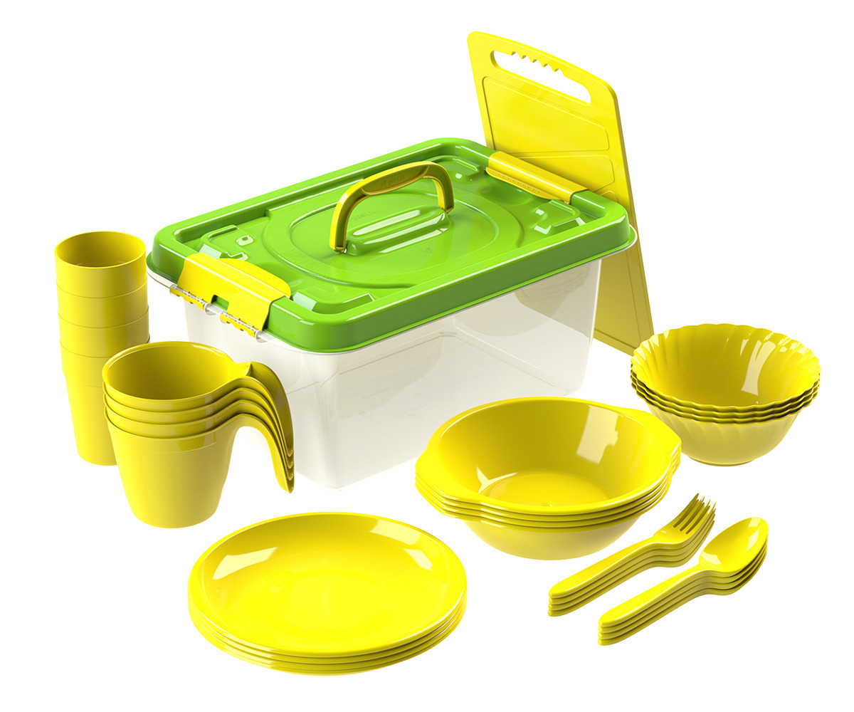 Набор посуды для пикника или в дорогу (4 персоны, 22 предмета)