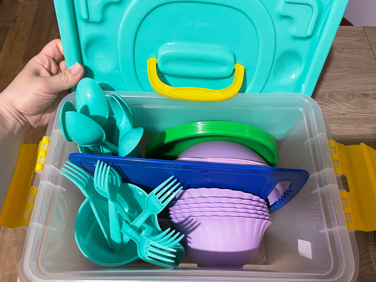 1Набор посуды для пикника №4 (4 персоны, 30 предметов) в цветовом ассортименте