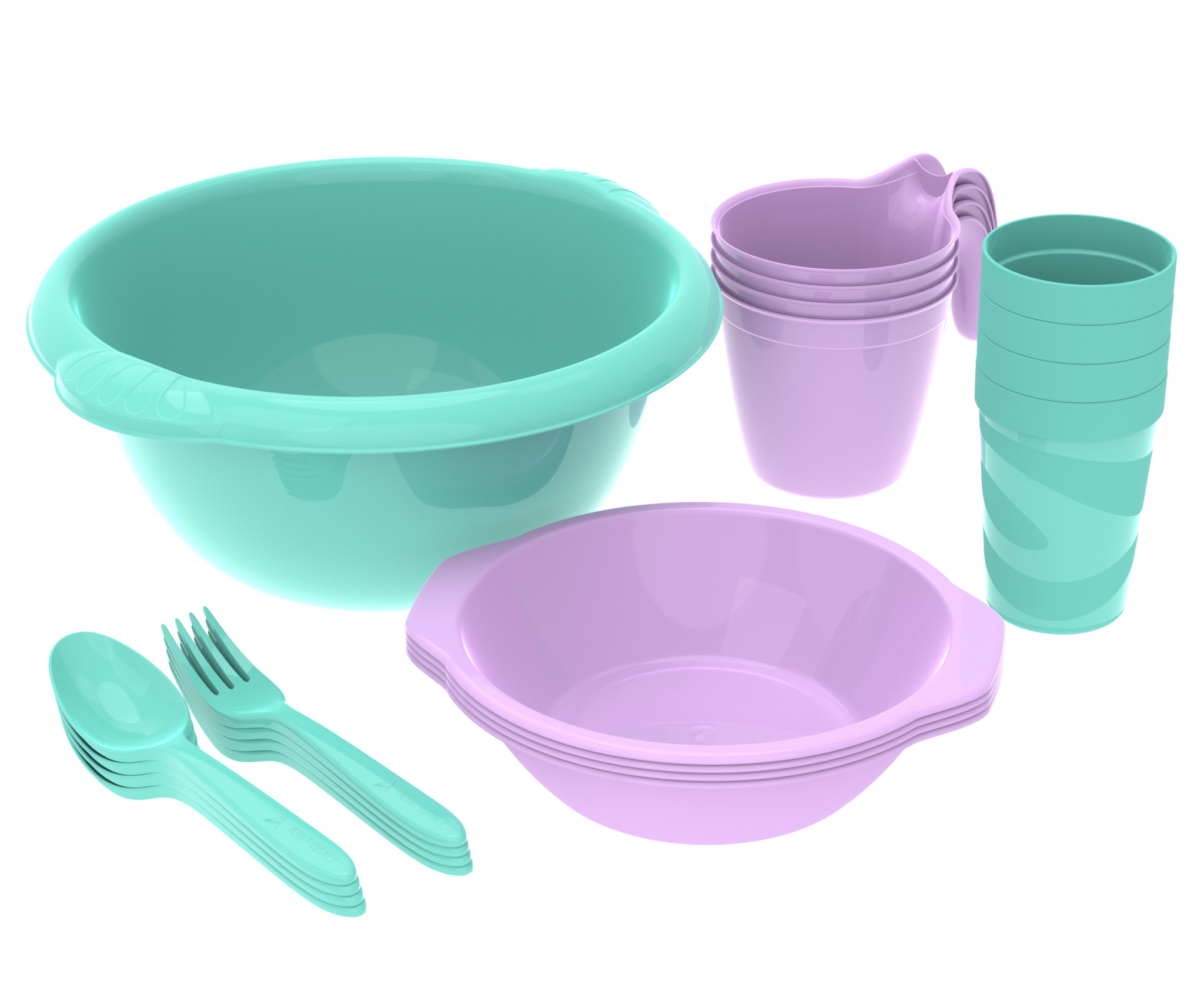 Набор посуды для пикника №1 (4 персоны, 21 предмет) в цветовом ассотименте