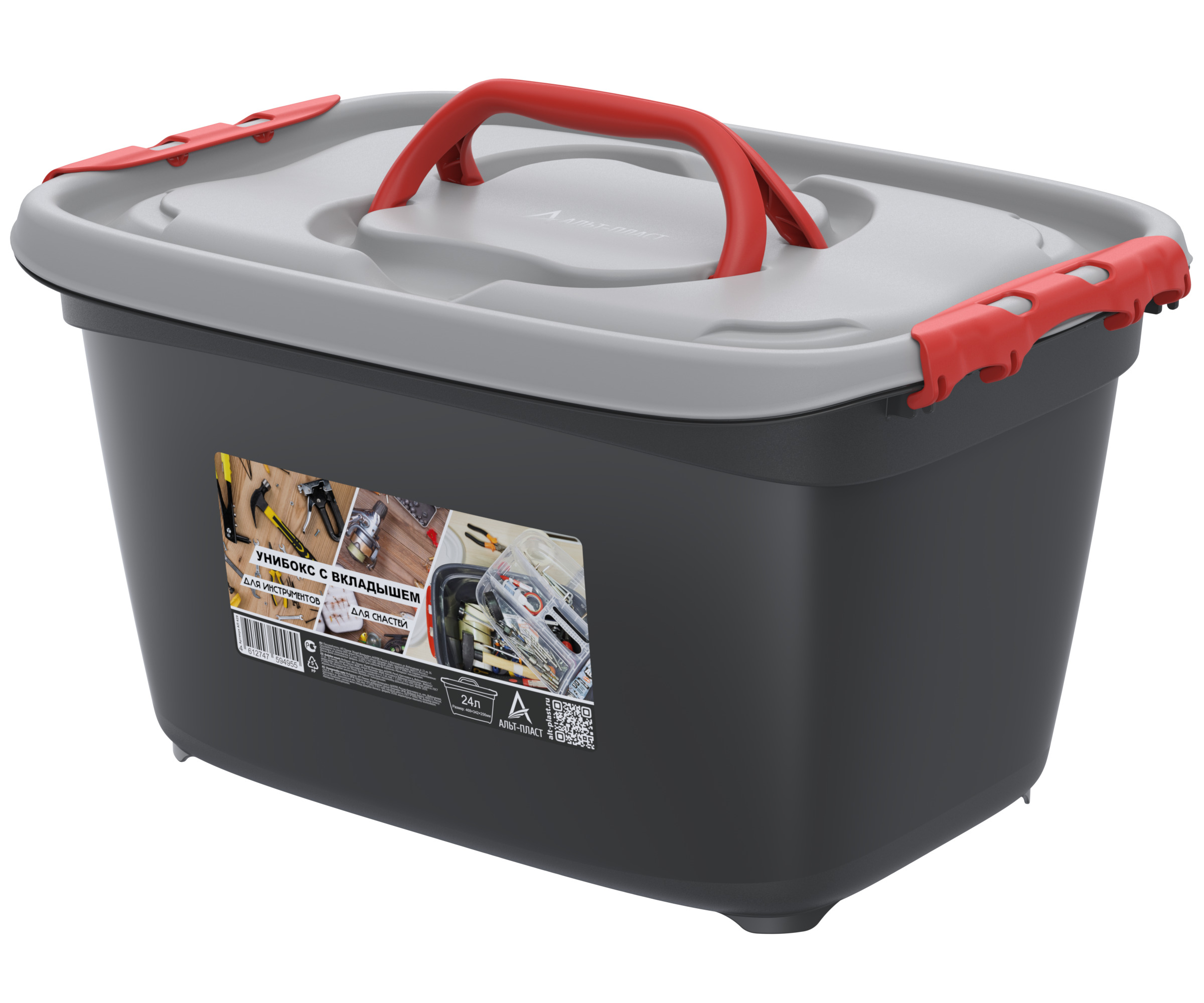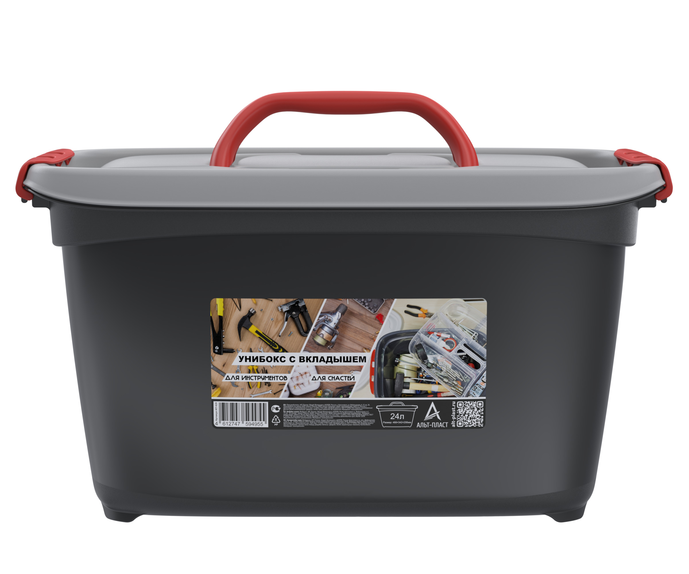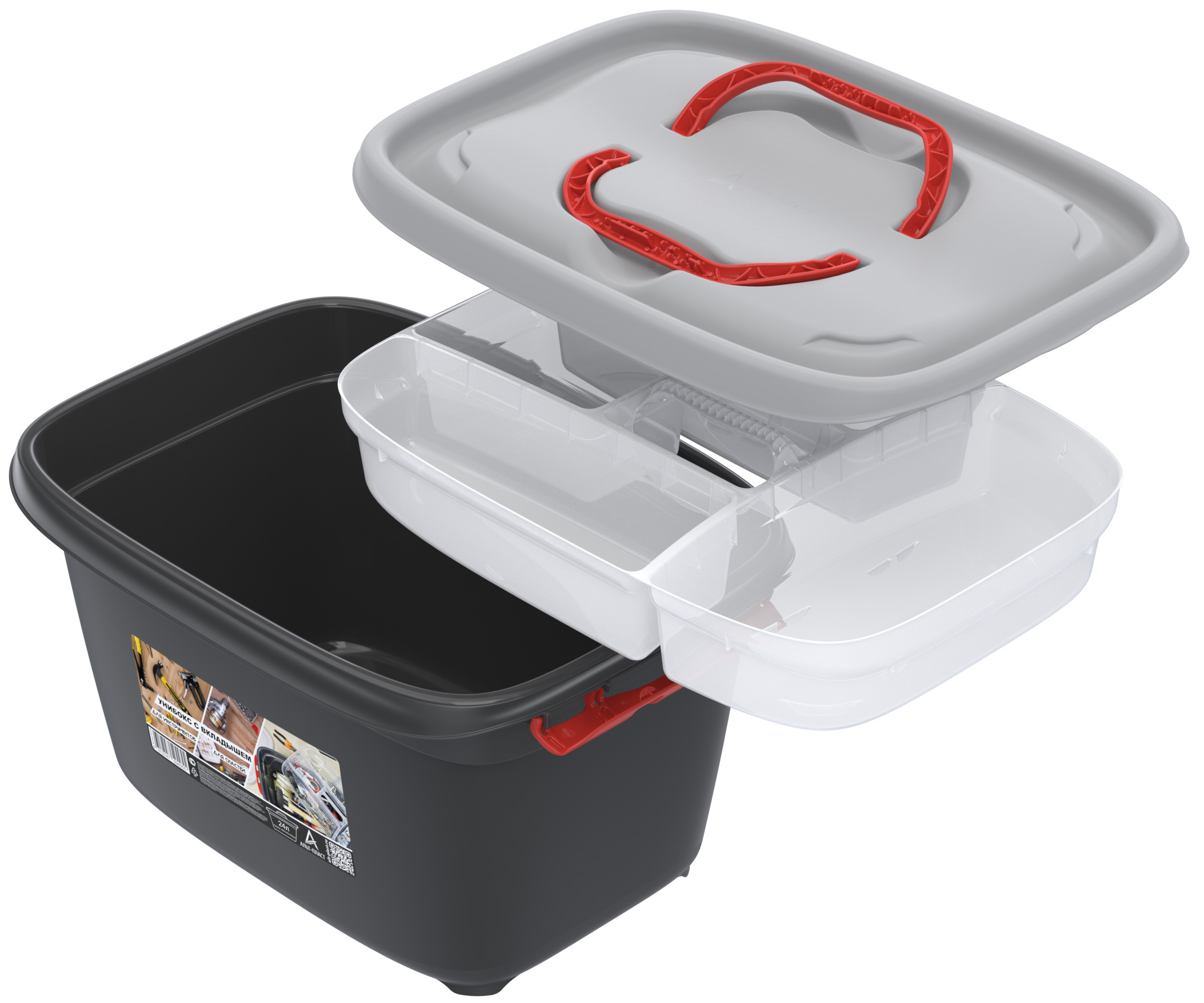 Унибокс с вкладышем 24л (468х342х256мм) (Для инструментов и для рыболовных снастей). Уцененный товар