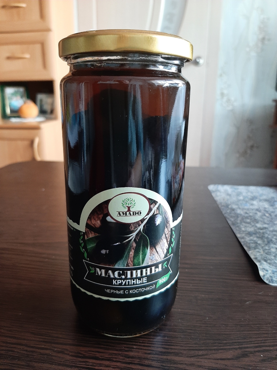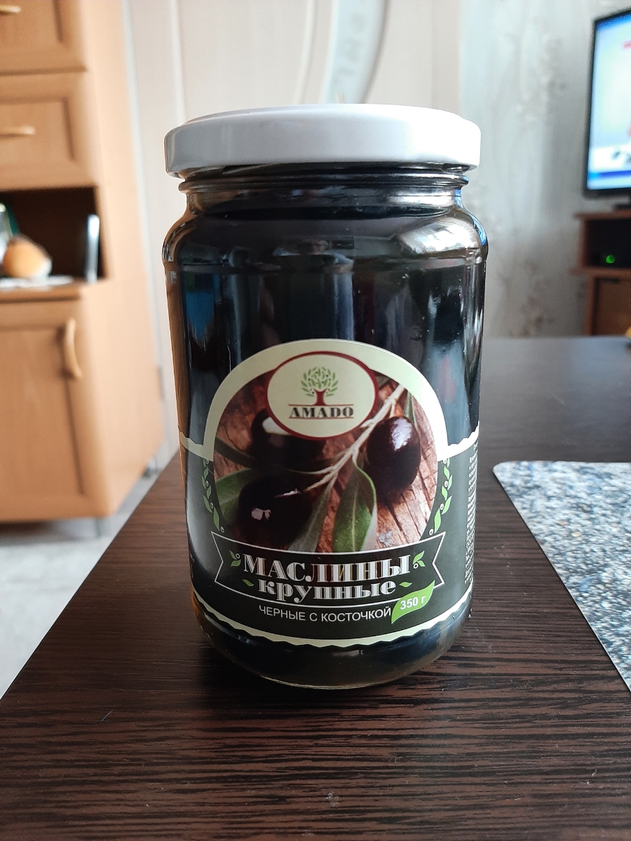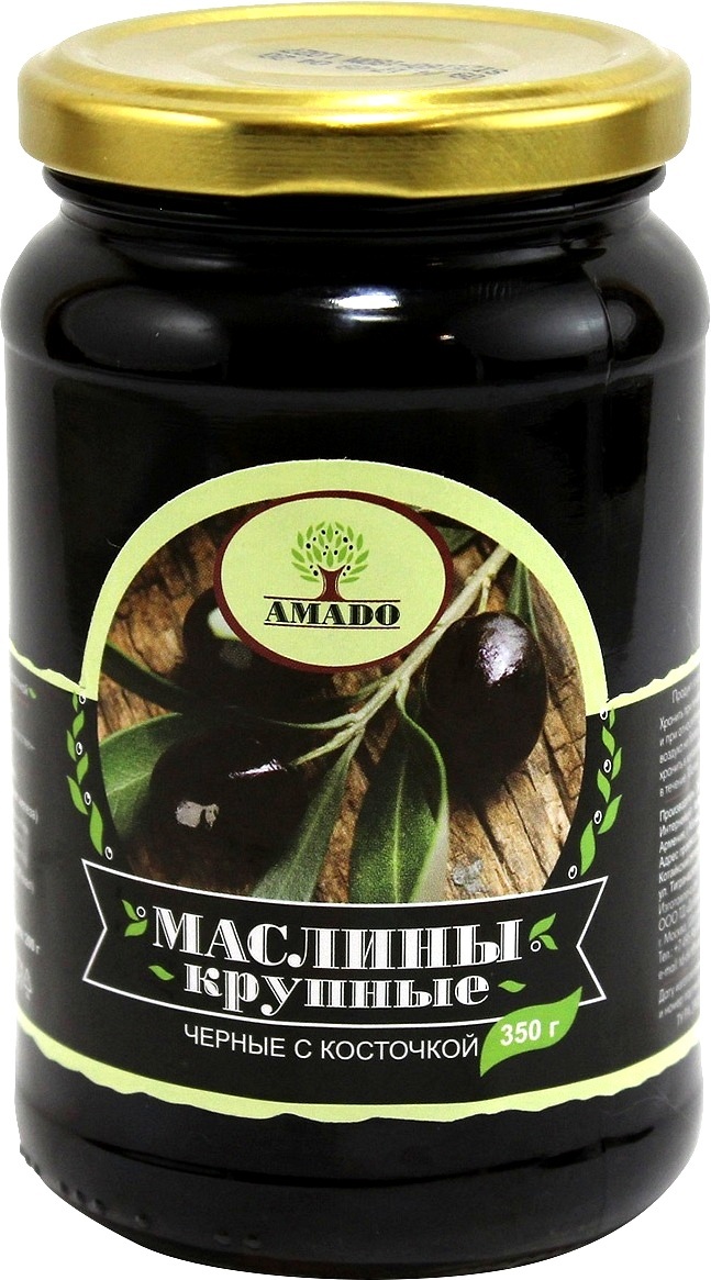 Amado Маслины черные с косточкой крупные, ст/б 350 г
