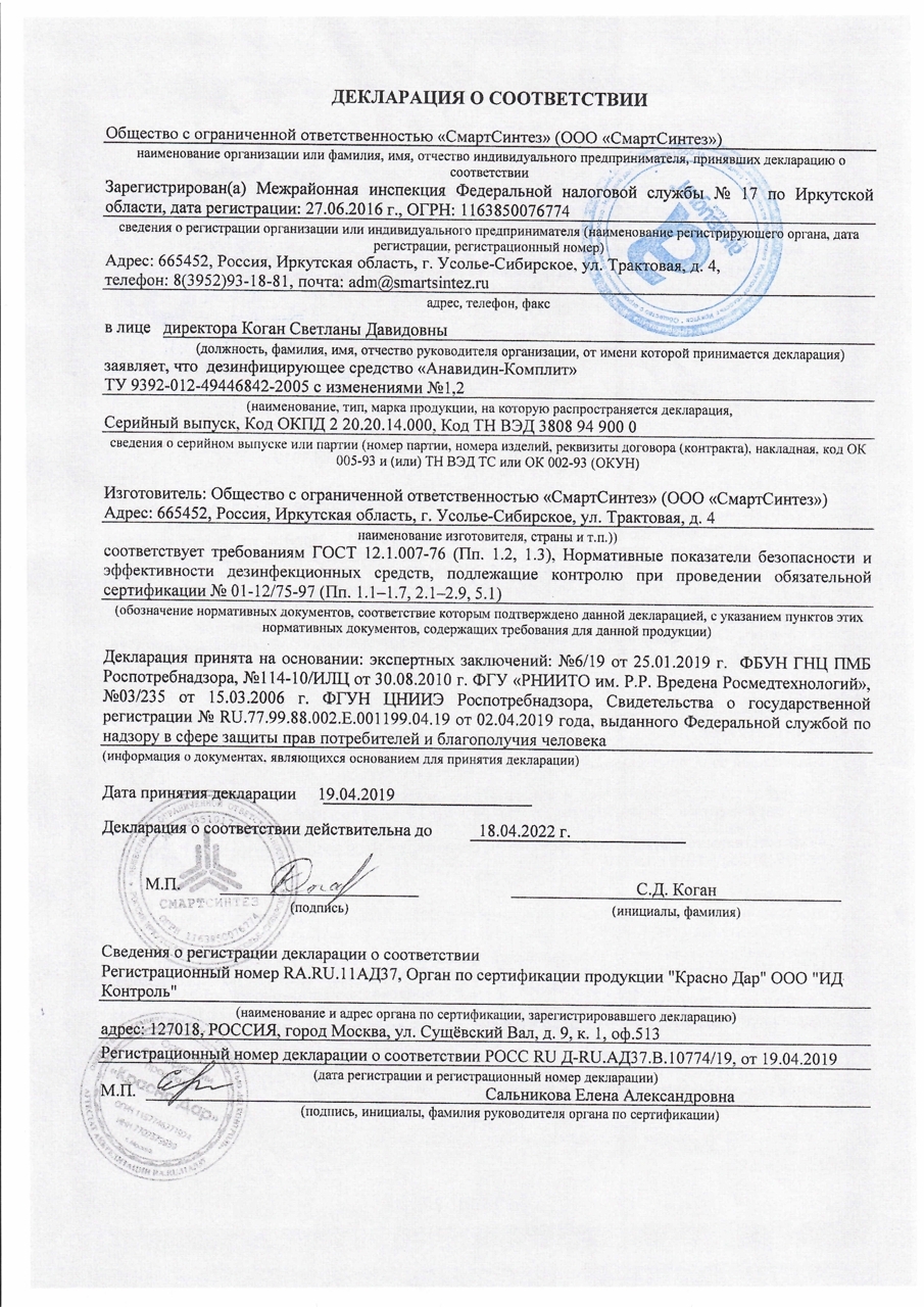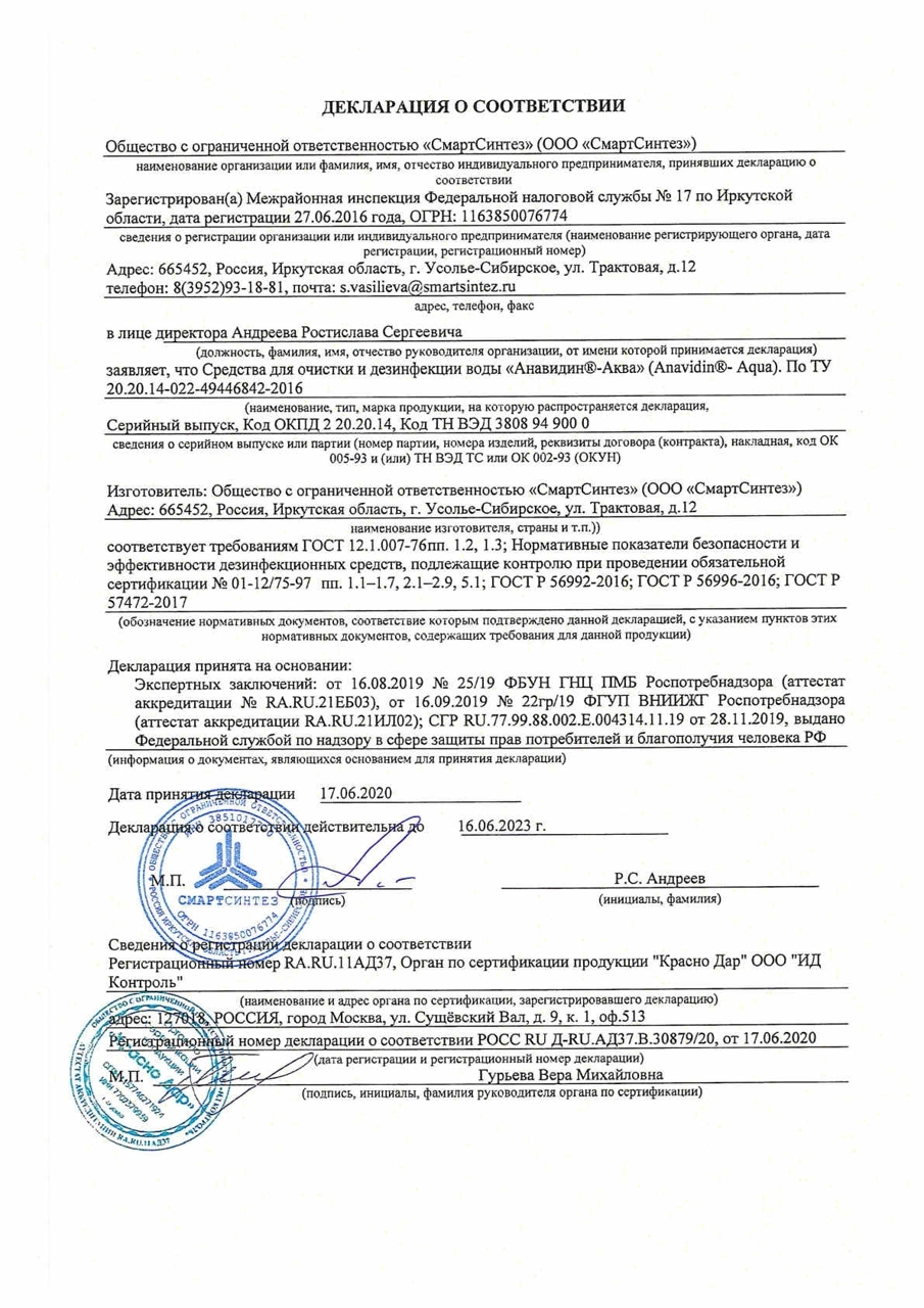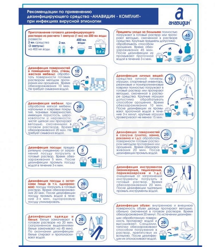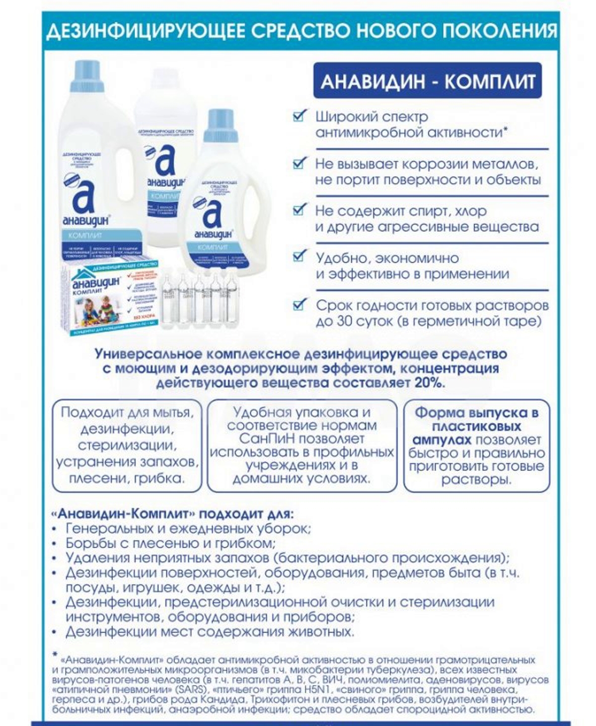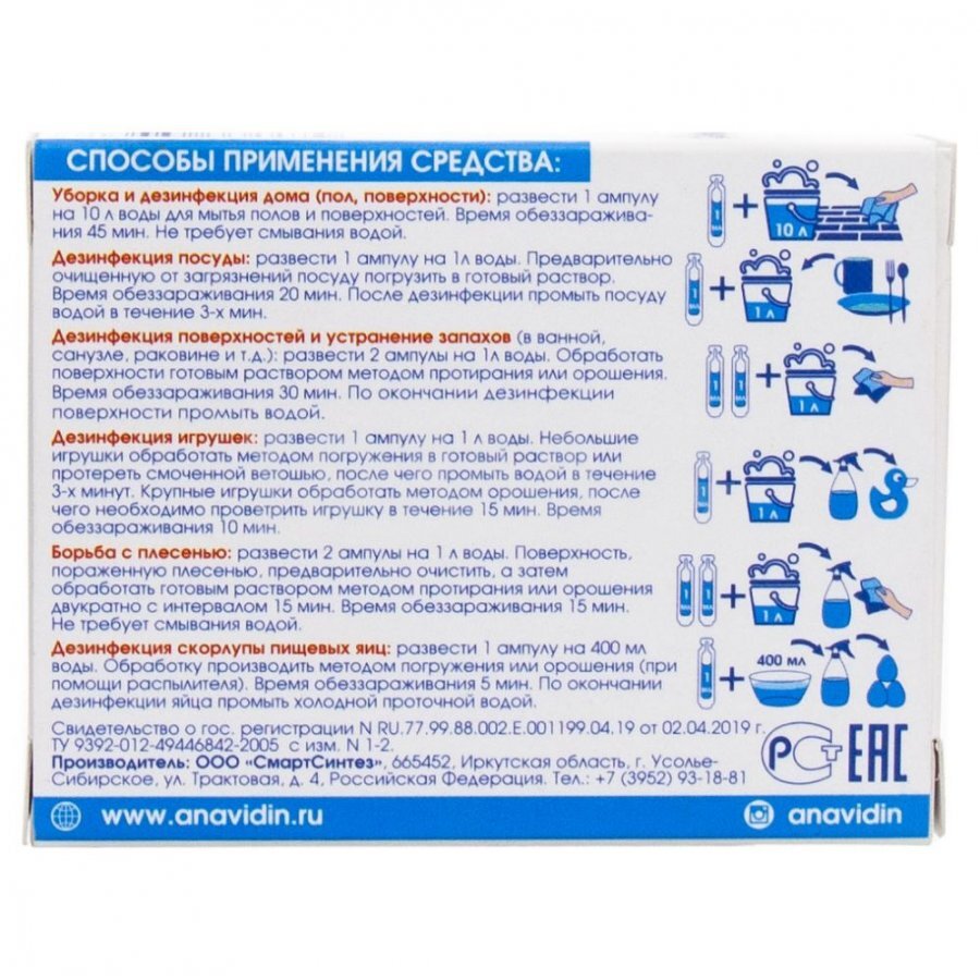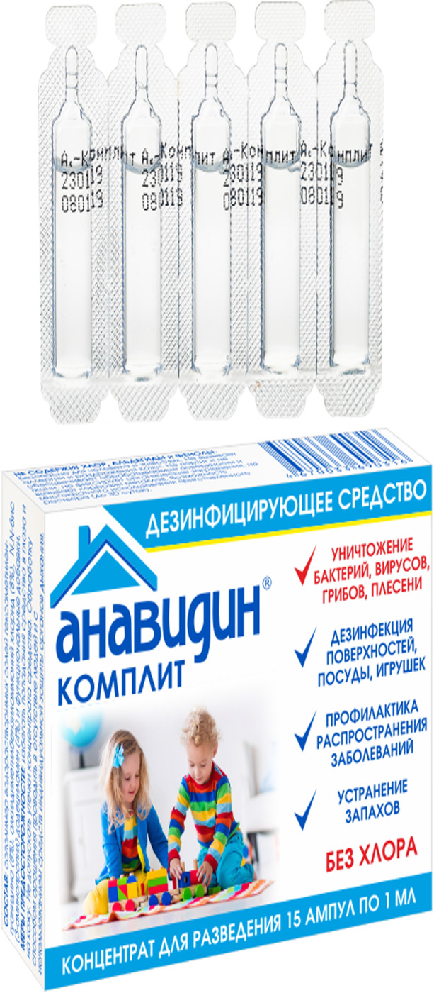 Дезинфицирующее средство с моющим эффектом без хлора без спирта "Анавидин-Комплит", 1мл*15шт в коробке
