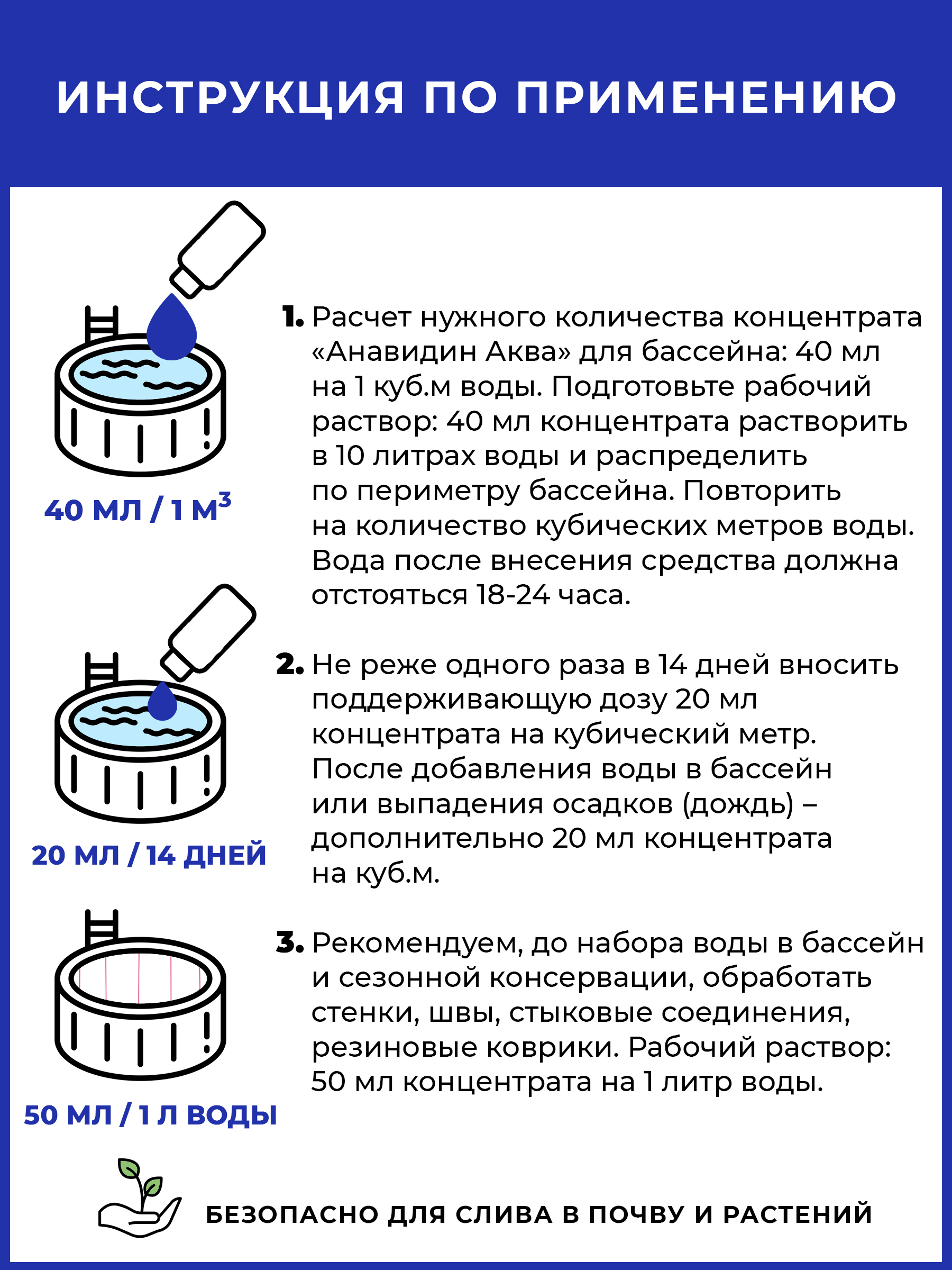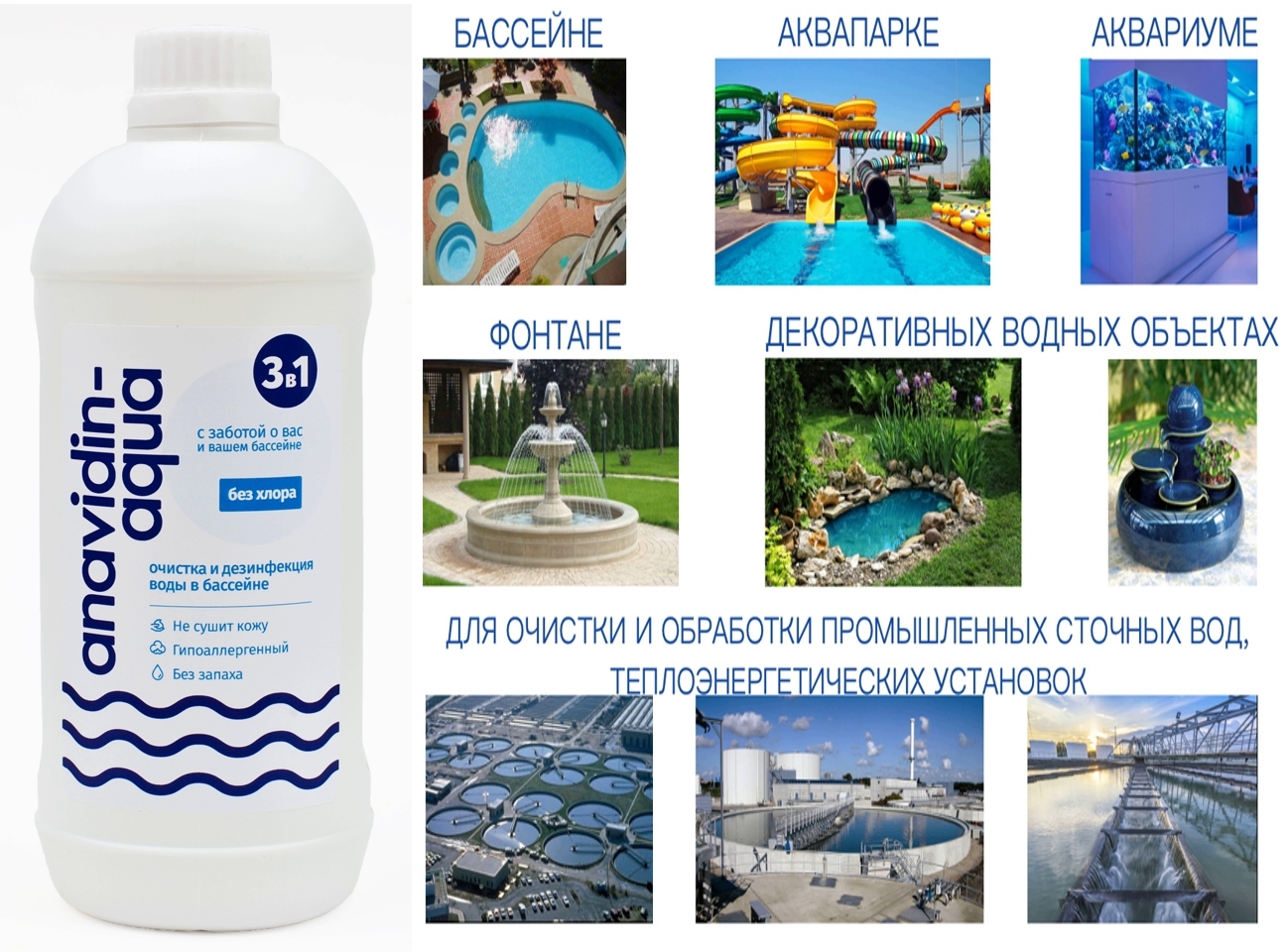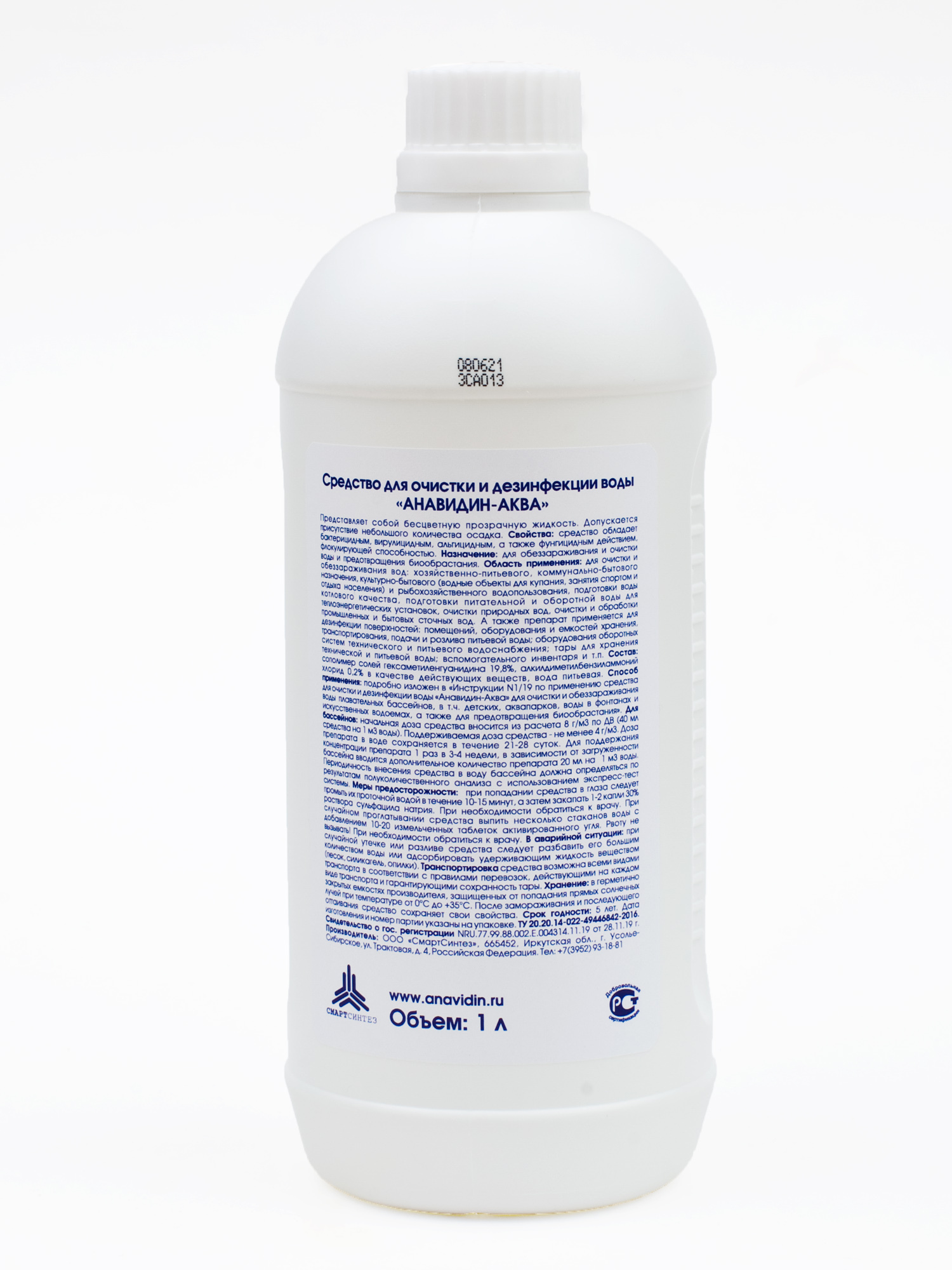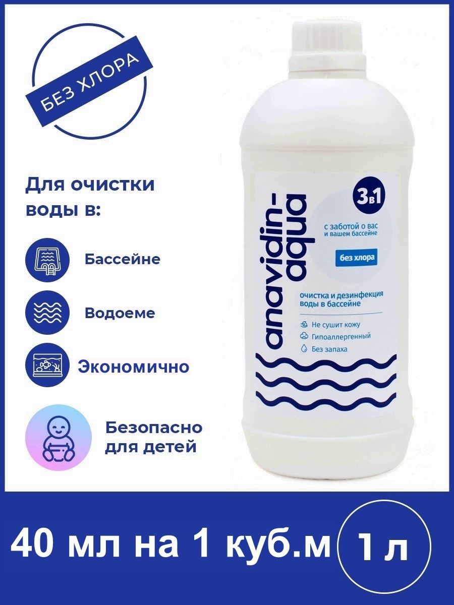 Для очистки воды бассейнов и фонтанов, водоемов, сточных вод. Средство концентрат без хлора "Анавидин Аква" 1л 1000мл