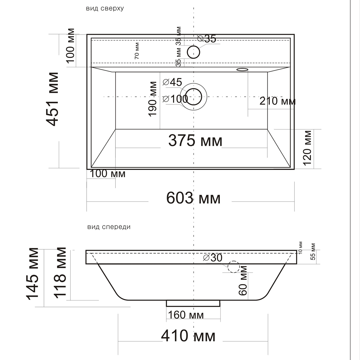 Раковина для ванной комнаты встраиваемая из искусственного камня ANDREA Classic 600