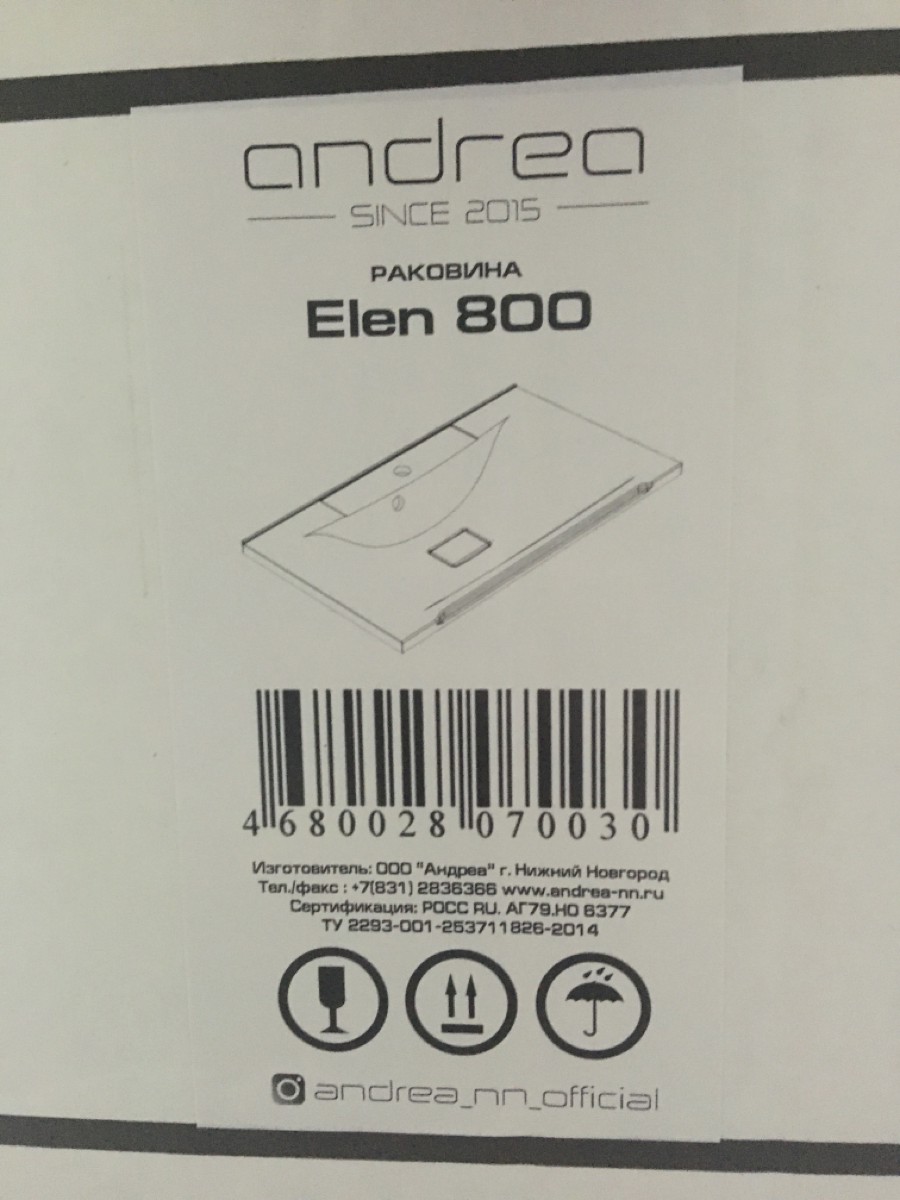 Раковина 65 см Andrea Elen 650