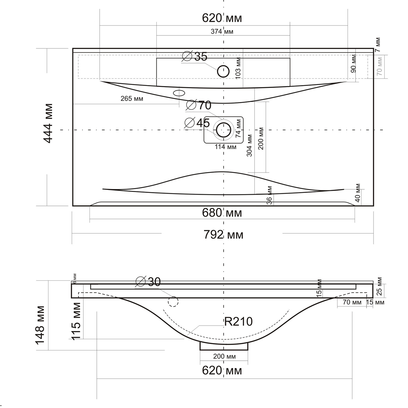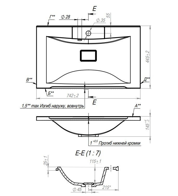 Раковина для ванной комнаты встраиваемая Elen 75