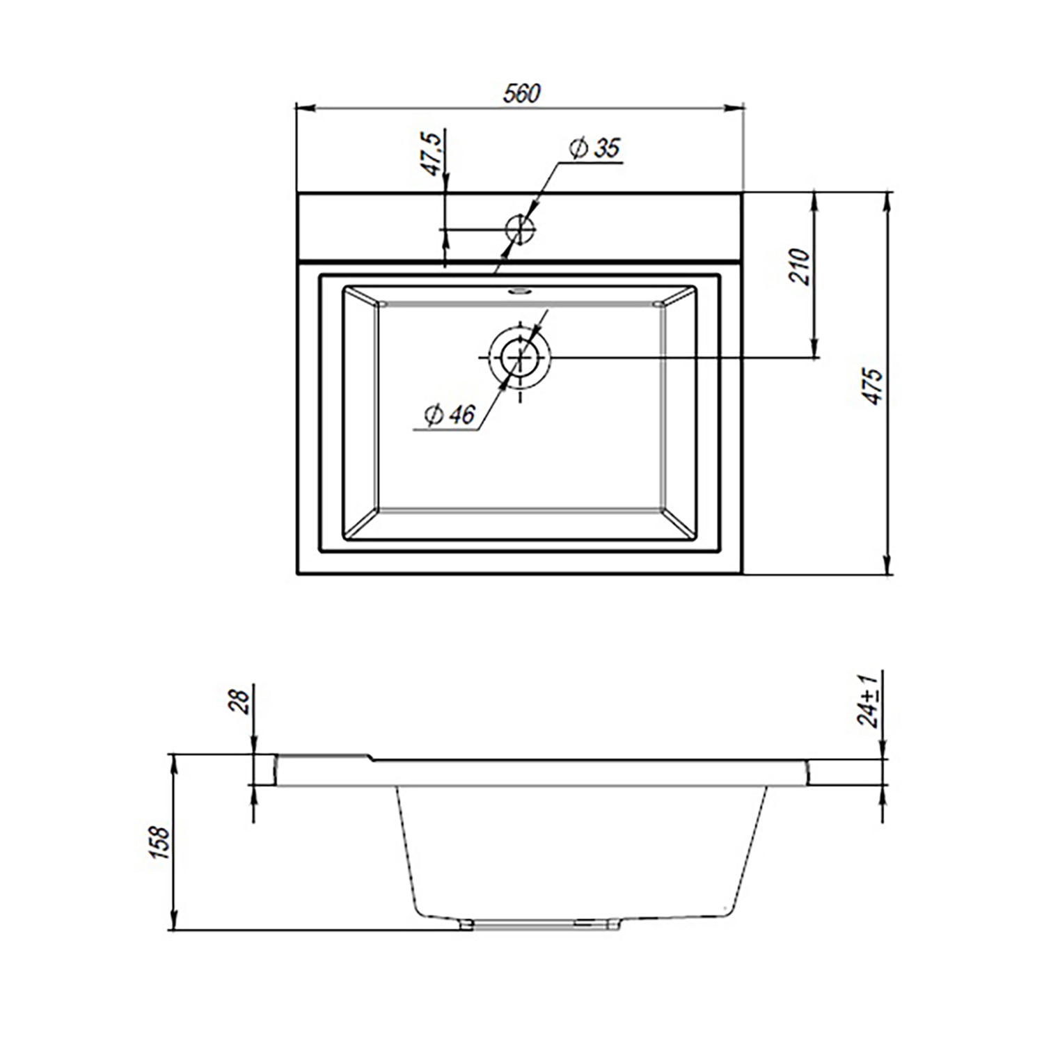 Раковина для ванной комнаты встраиваемая,Подвесная Corolina 50