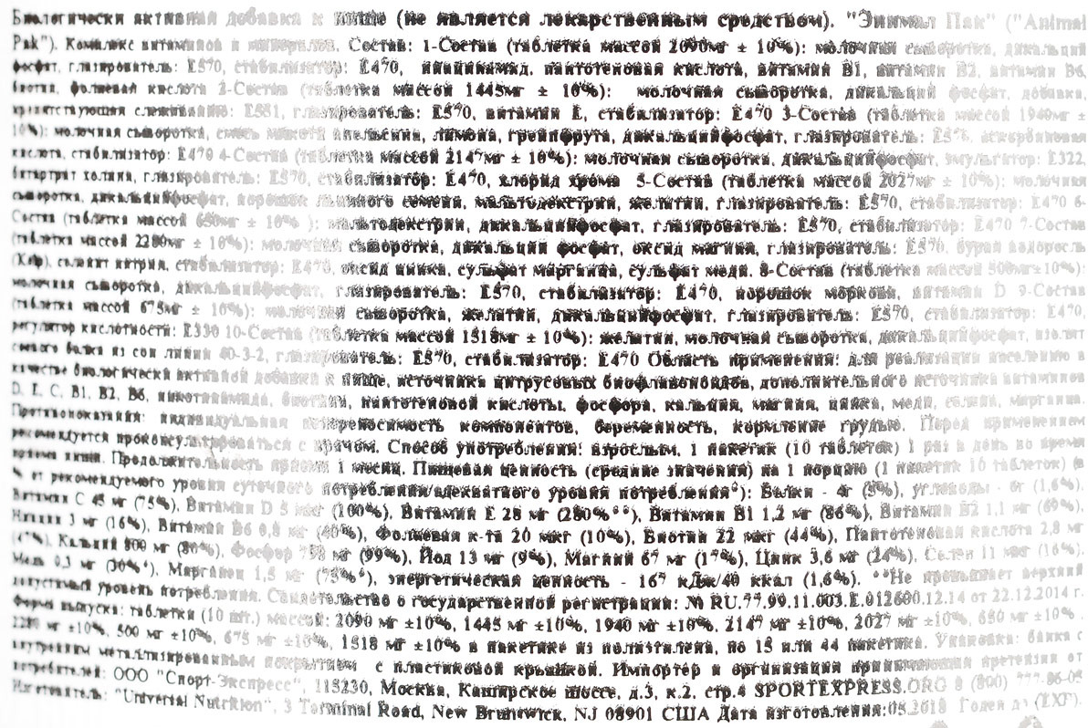 Витаминно-минеральные комплексы Animal "Pak", 44 пакетика