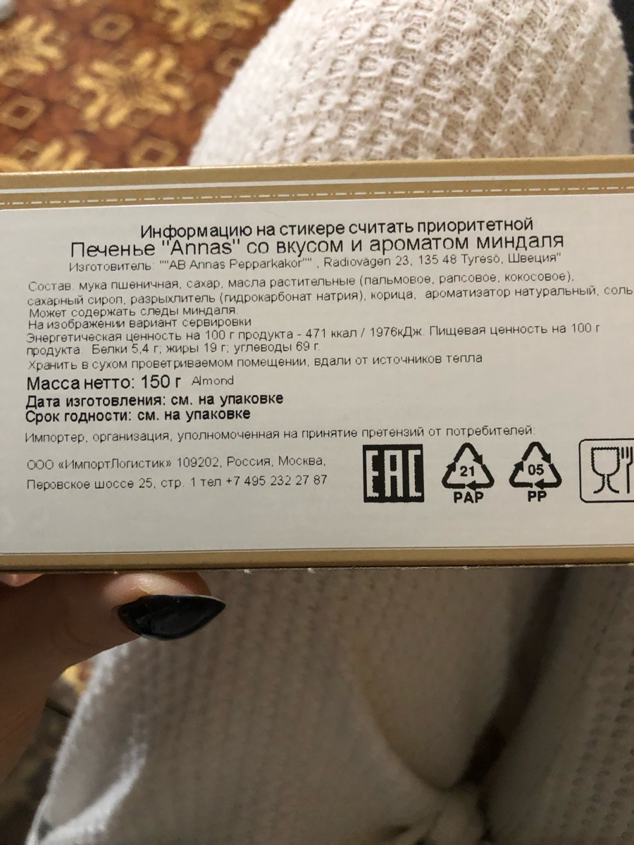 Печенье тонкое Annas Original со вкусом миндаля, 150 г