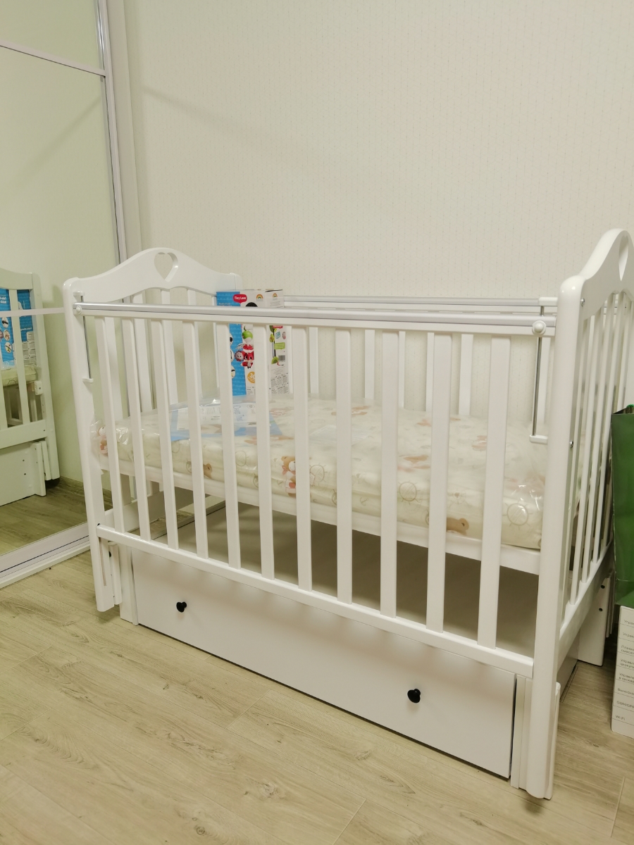 Кровать детская Каролина 4/6 с ящиком, универсальный маятник, цвет Белый