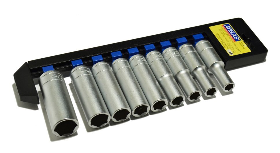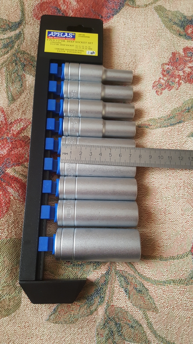 Набор торцевых головок высоких 1/2", 9 шт., 10-22 мм., CrV, Тайвань, Apelas, CS-4009DPHD